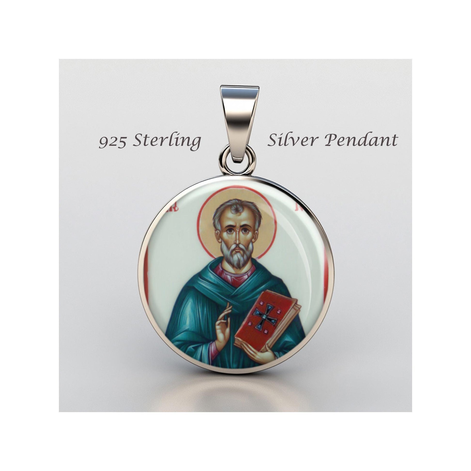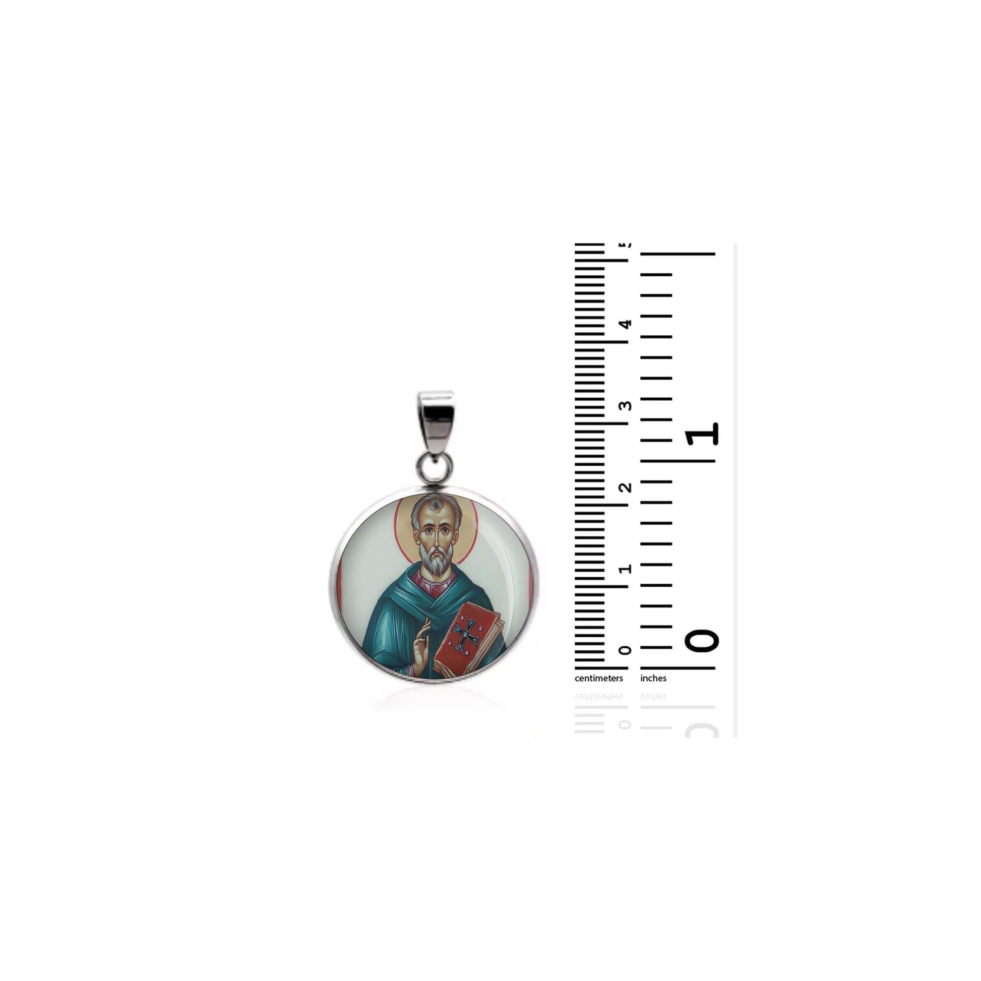 Dedicated to Saint Theodore, this 20mm sterling silver pendant features a delicate design under a clear glass dome, crafted with high-quality paper. The pendant comes in a beautiful jewelry box, ready for gifting—perfect for birthdays, anniversaries, Christmas, Easter, Baptism, First Communion, Confirmation, Mother's Day, or as a thoughtful gift for a loved one.