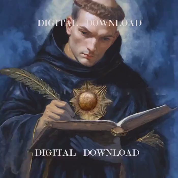 Saint Thomas Aquinas Oil Painting Style Religious Art | Theologian & Philosopher | Digital Download