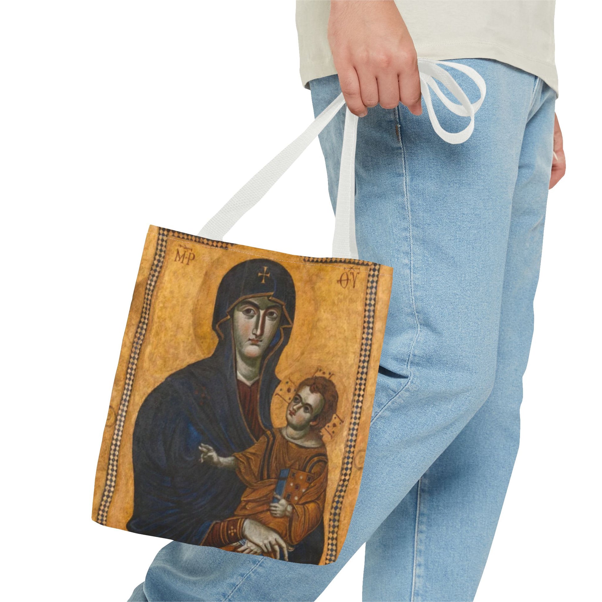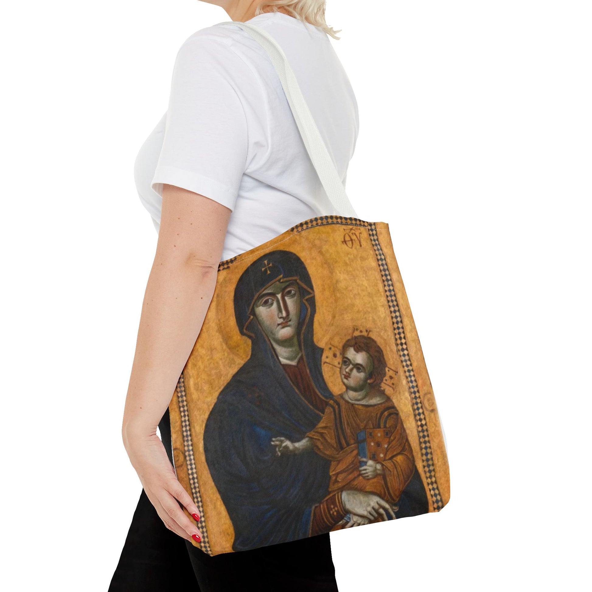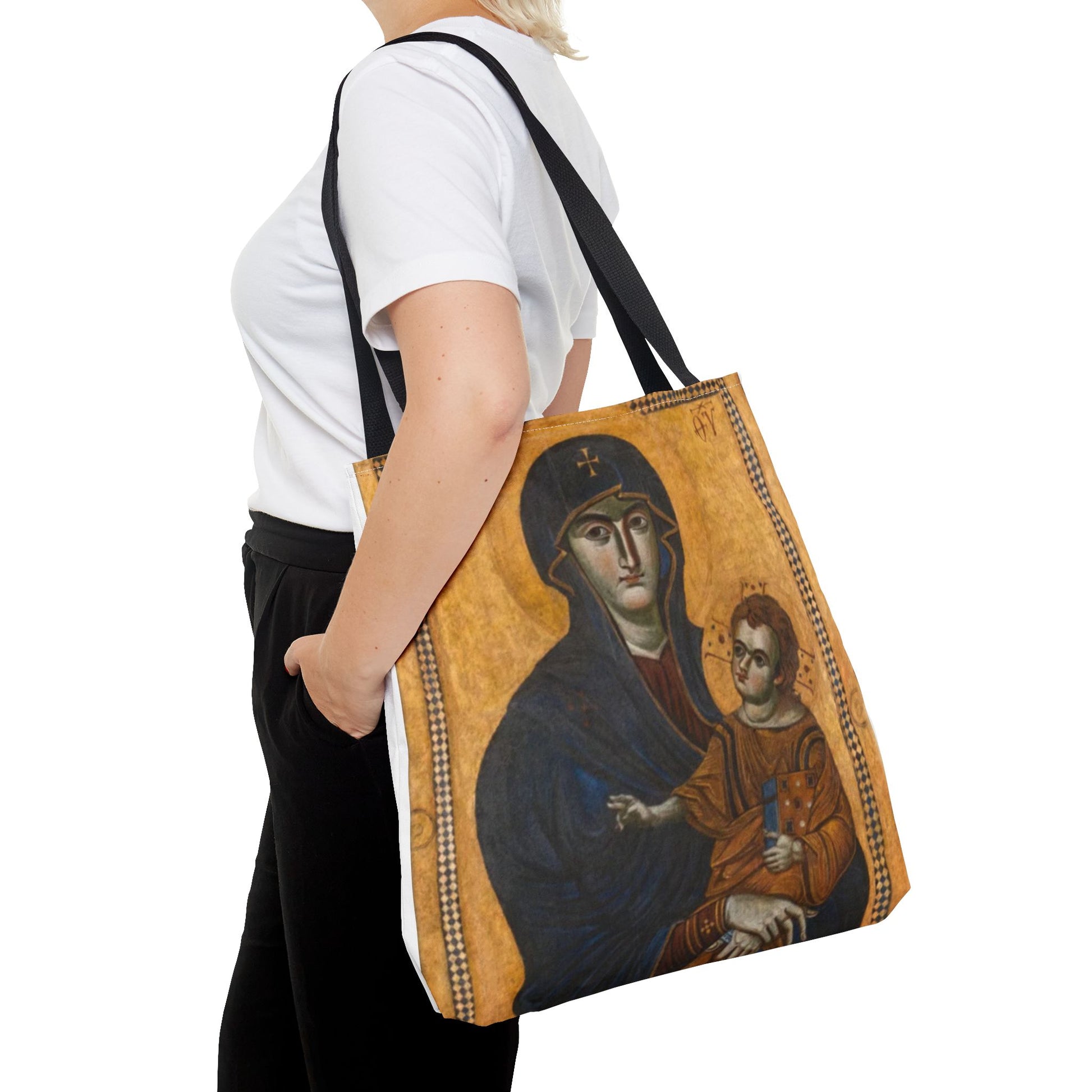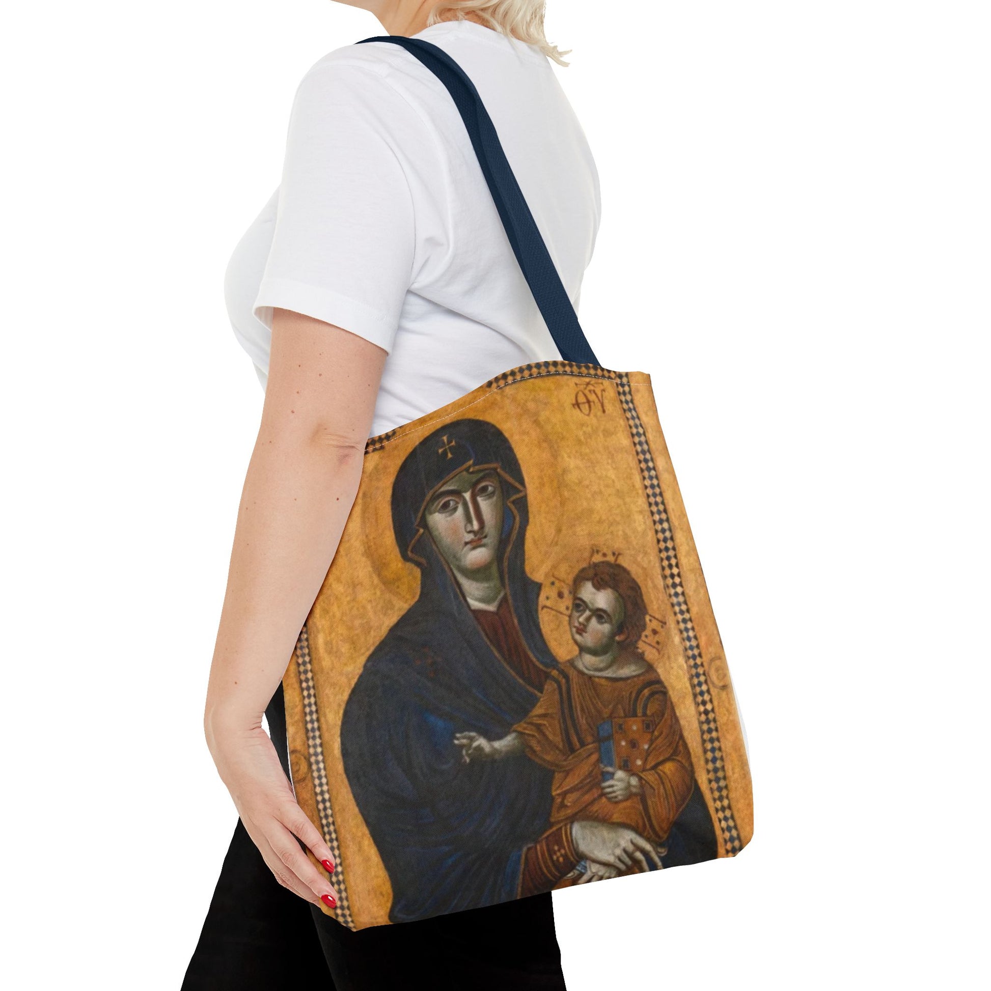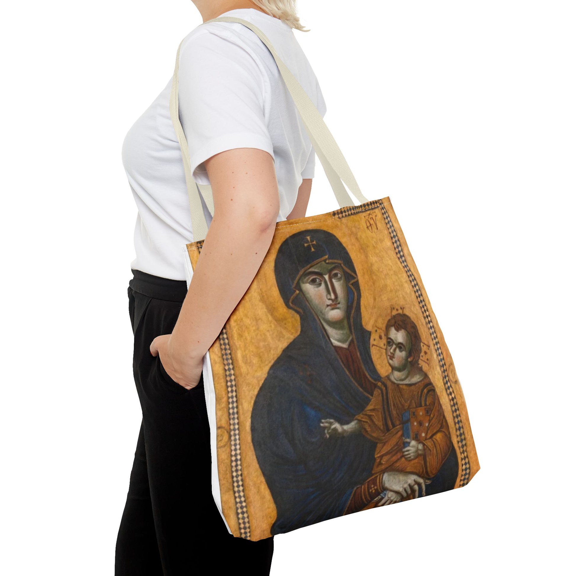 Salus Populi Romani Floral Tote Bag | Catholic Eco-Friendly Shopper | Gift for Spirituality Lovers