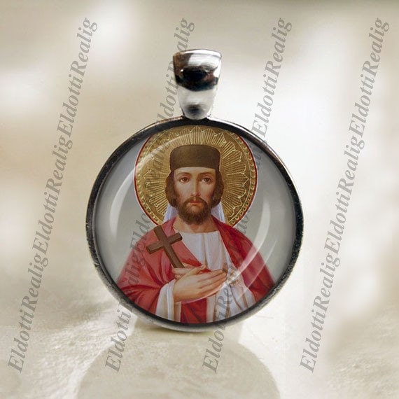 St. Abo of Tiflis Catholic Saint Silvertone Medal Pendant / Charm Cabochon w Glass Dome