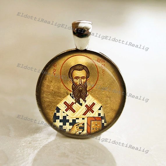St. Ambrose Religious Christian Catholic Medal Pendant / Charm Cabochon with Glass Dome