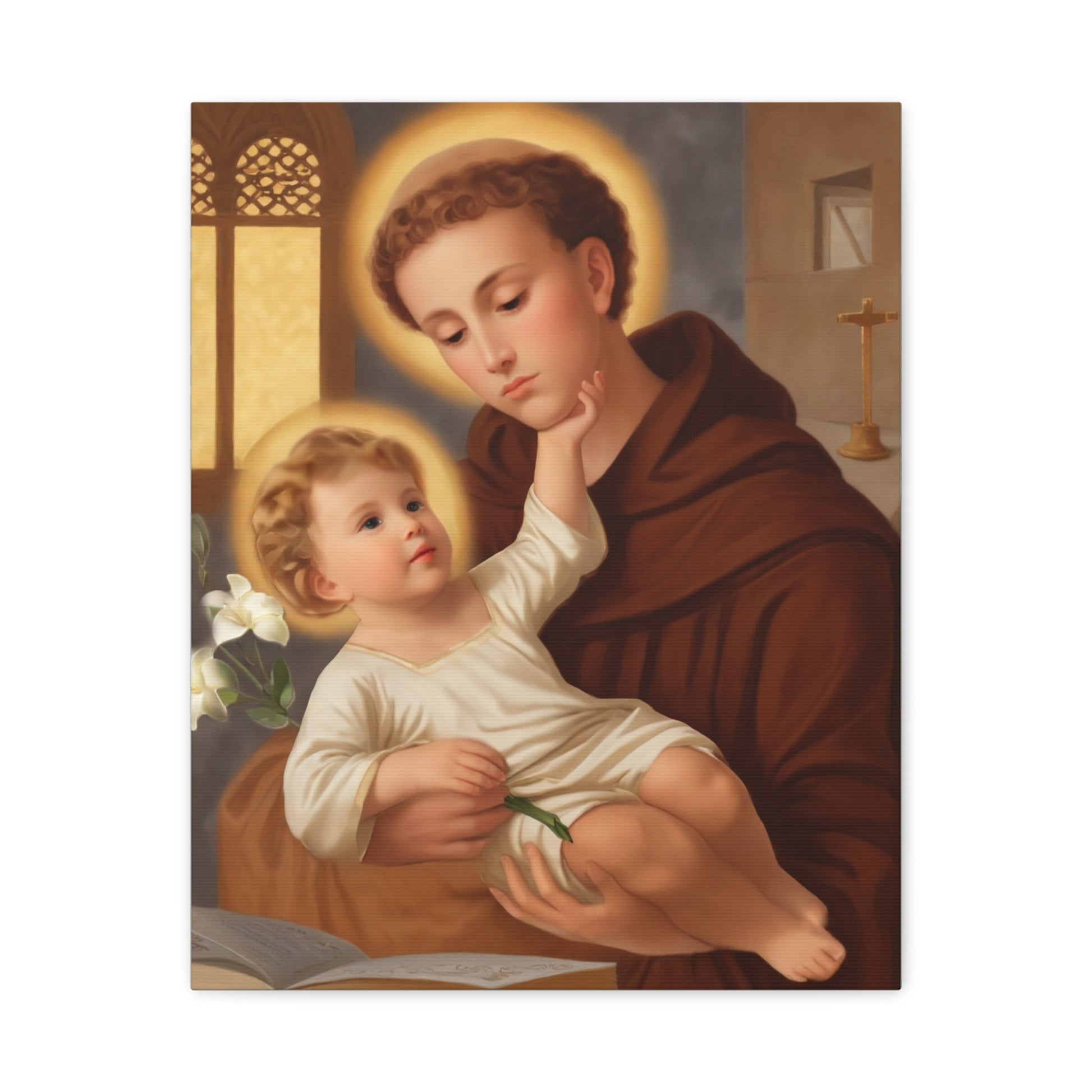 St. Anthony and Jesus Catholic Canvas Print, Catholic Decor Wall, Gift Religious Christian