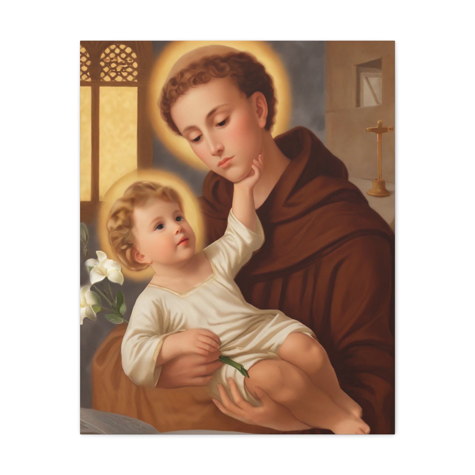 St. Anthony and Jesus Catholic Canvas Print, Catholic Decor Wall, Gift Religious Christian