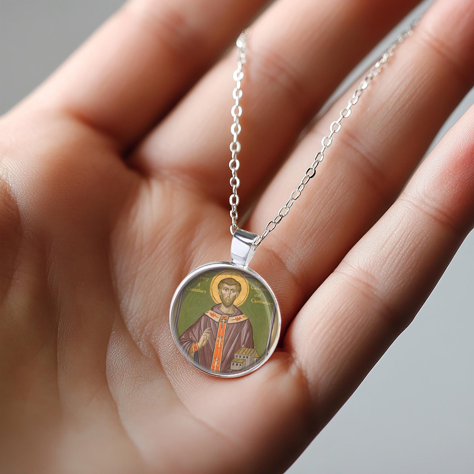 St. Augustine of Canterbury Necklace Medal Silver/Bronze Pendant Christian Religious Jewelry