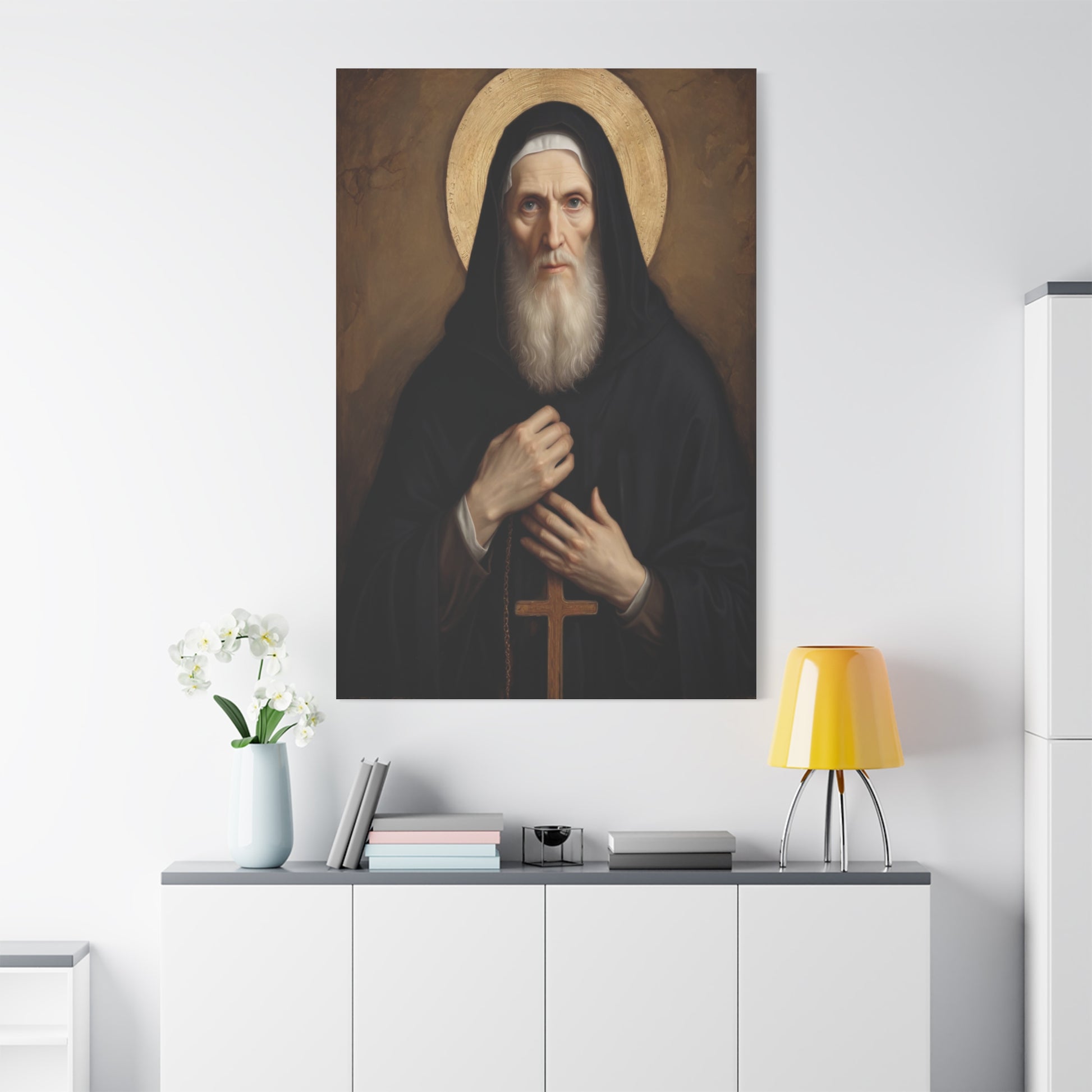 St. Benedict of Nursia Catholic Canvas Wall Art, Christian Decor