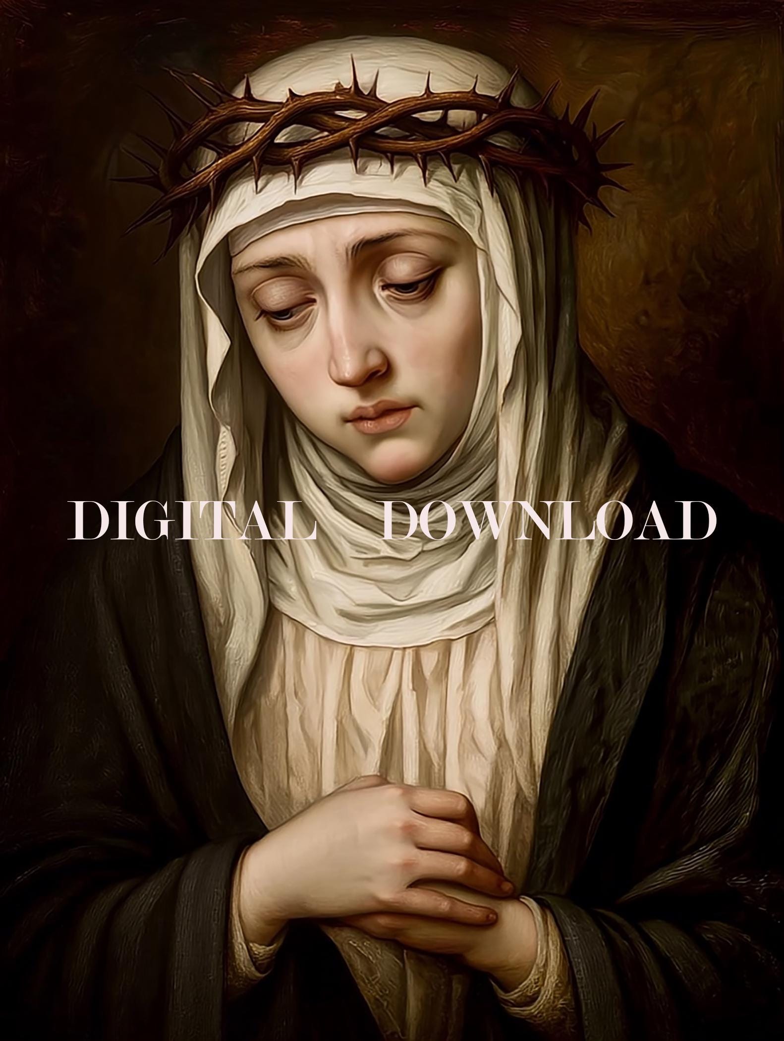 St. Catherine of Siena with Crown of Thorns Catholic Religious Art DIGITAL DOWNLOAD