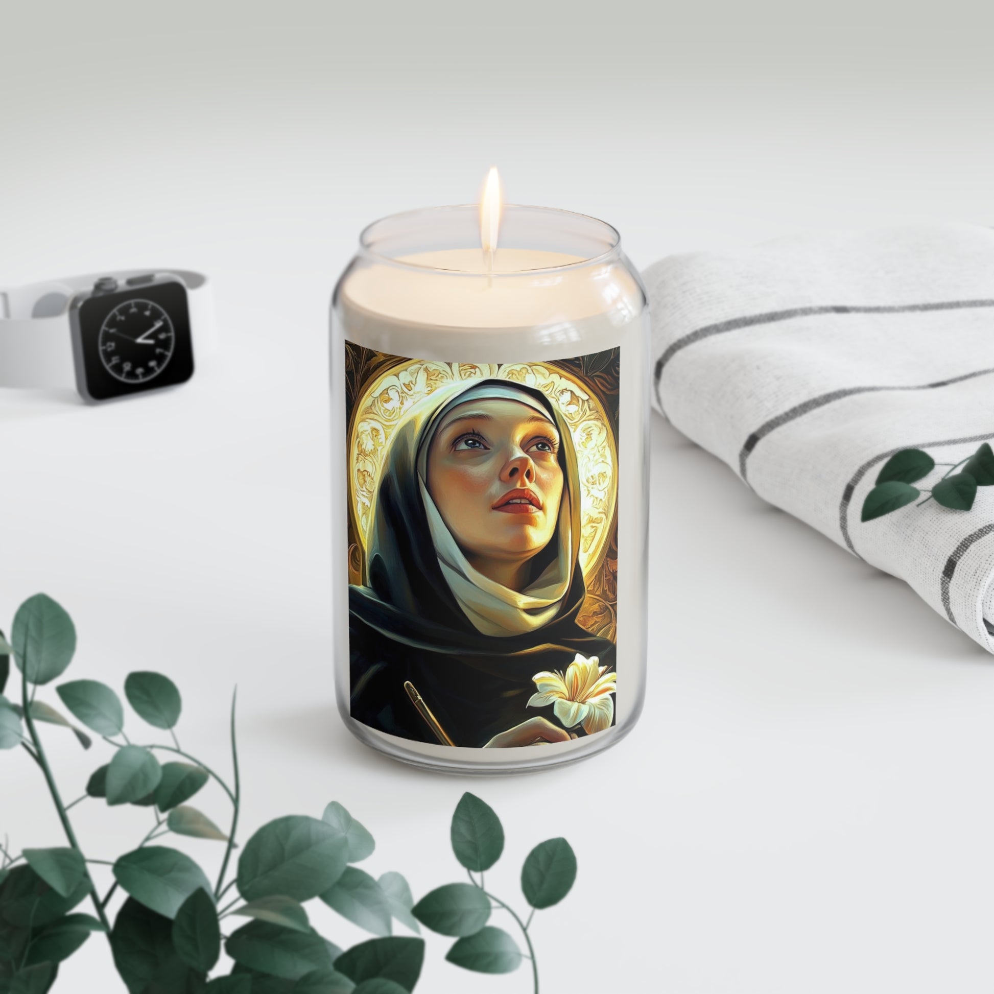 St. Catherine of Sweden Catholic Serenity Scented Candle, 13.75oz | Relaxation Gift, Home Decor, Calm Atmosphere, Religious Decor