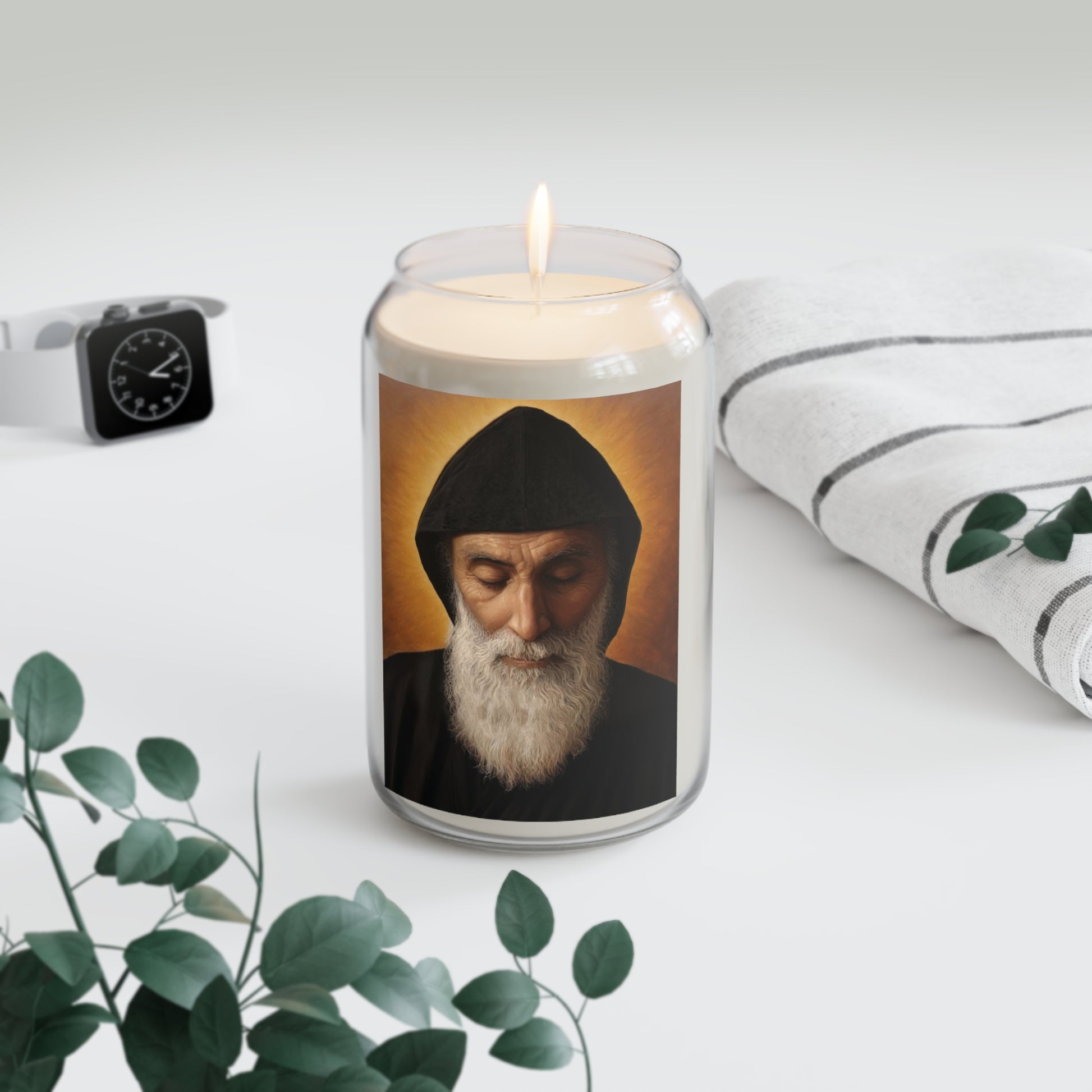 St. Charbel Makhlouf saint Catholic Serenity Scented Candle, 13.75oz | Relaxation Gift, Home Decor, Calm Atmosphere, Religious Decor