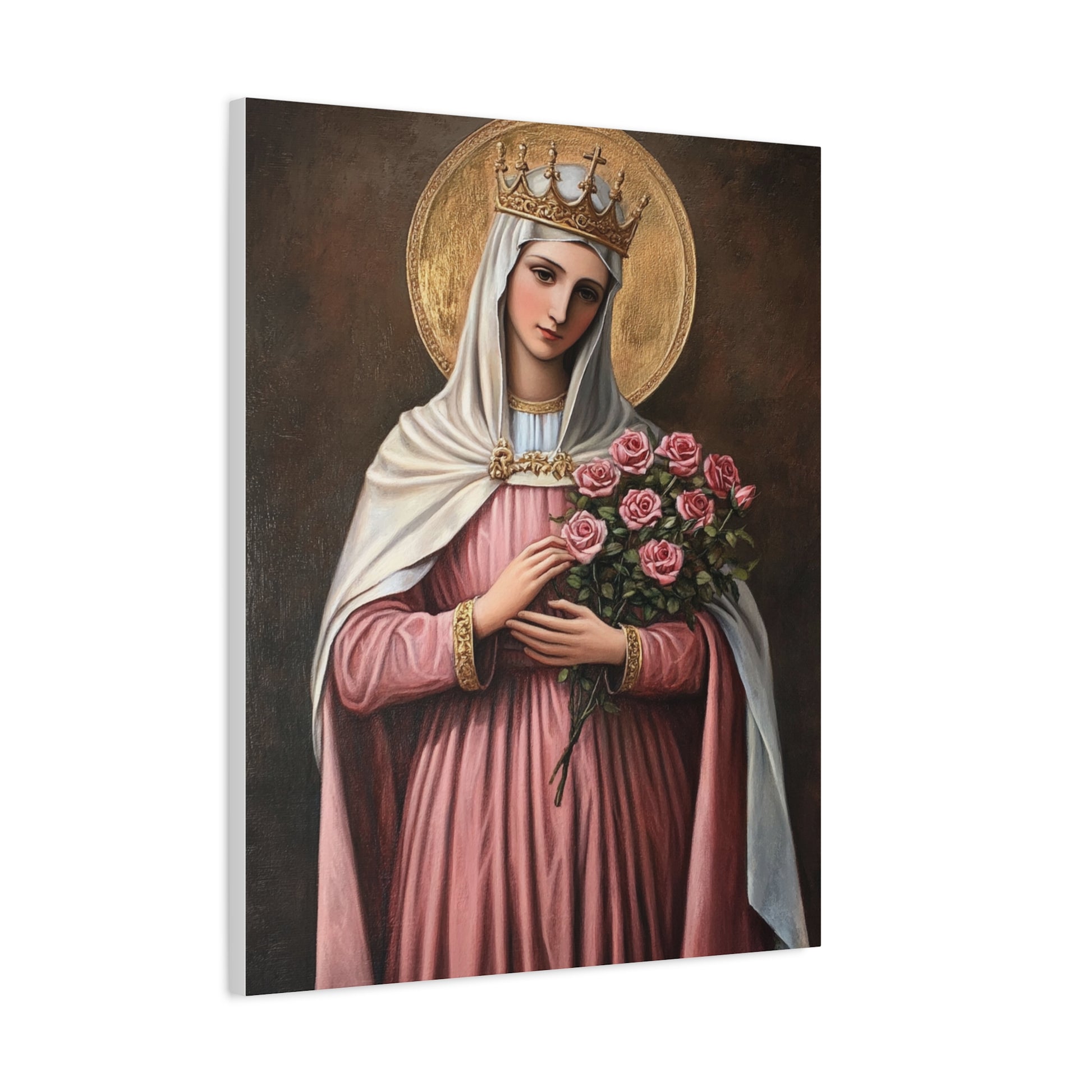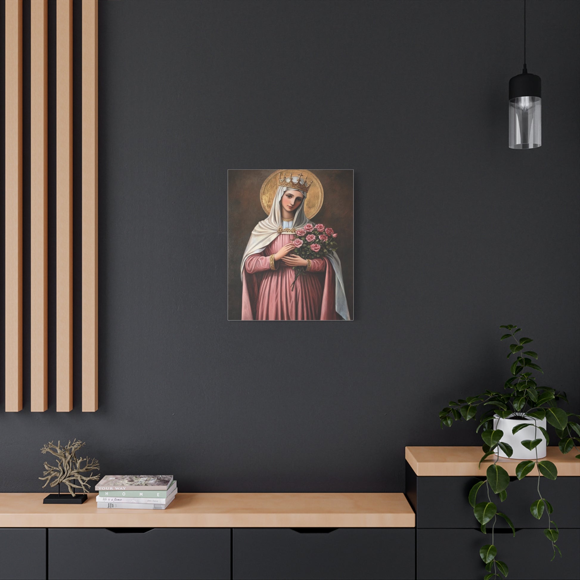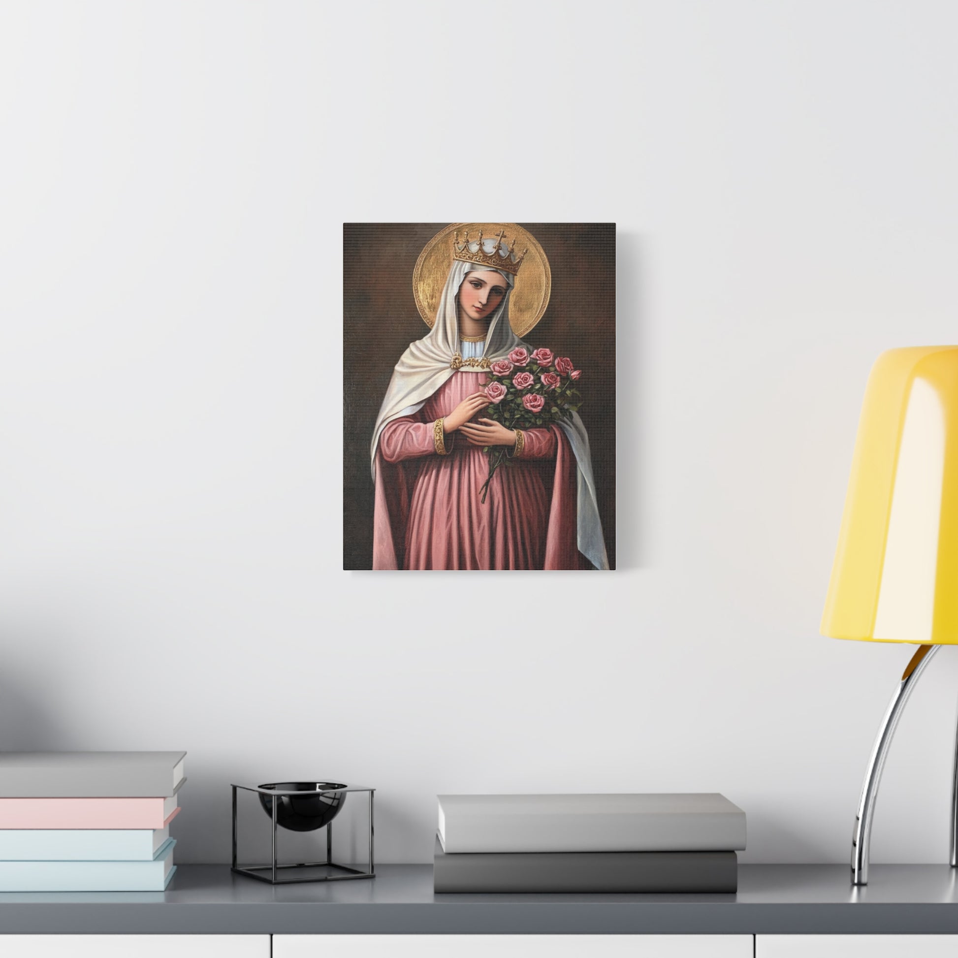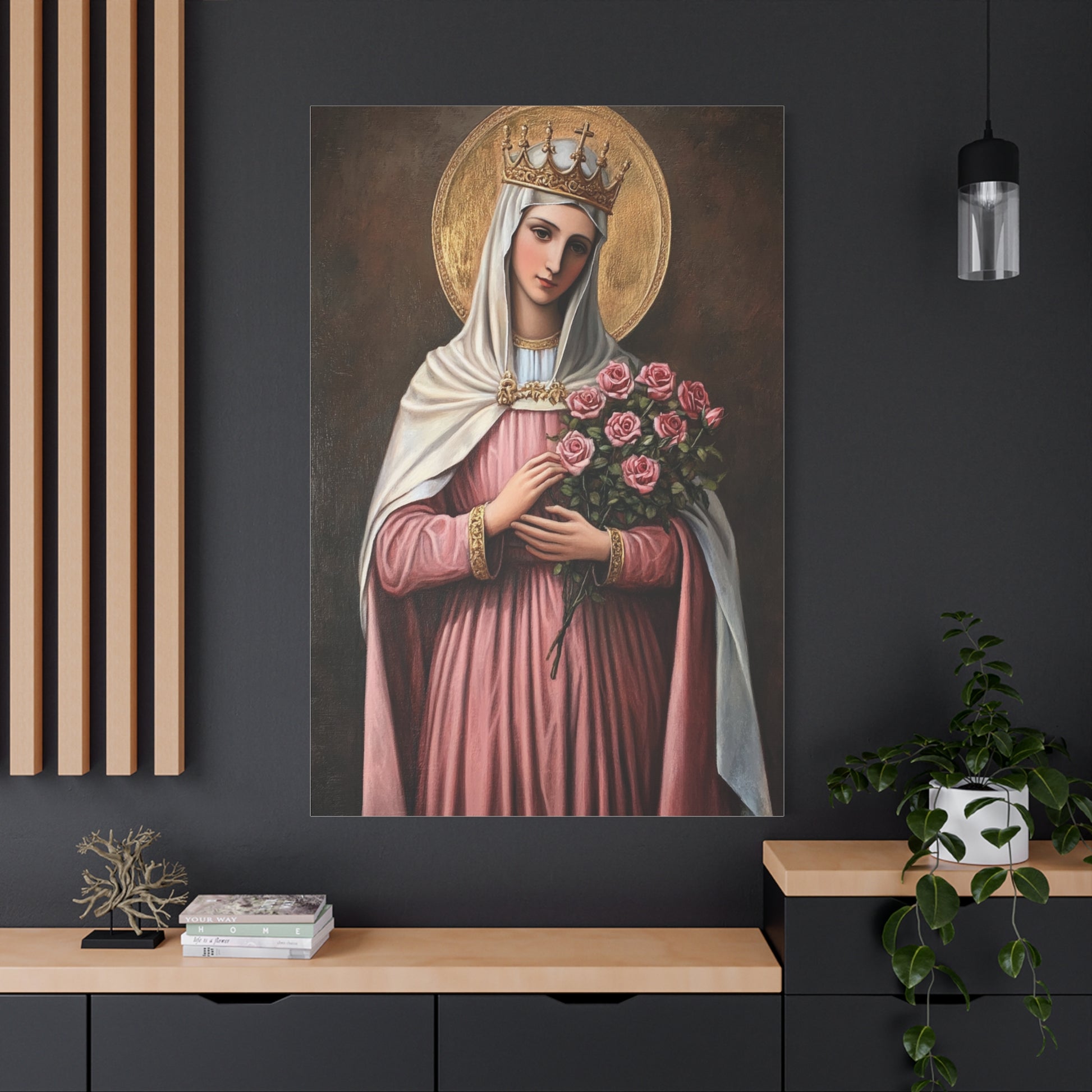 St. Elizabeth of Hungary with Roses Catholic Canvas Wall Art, Christian Decor