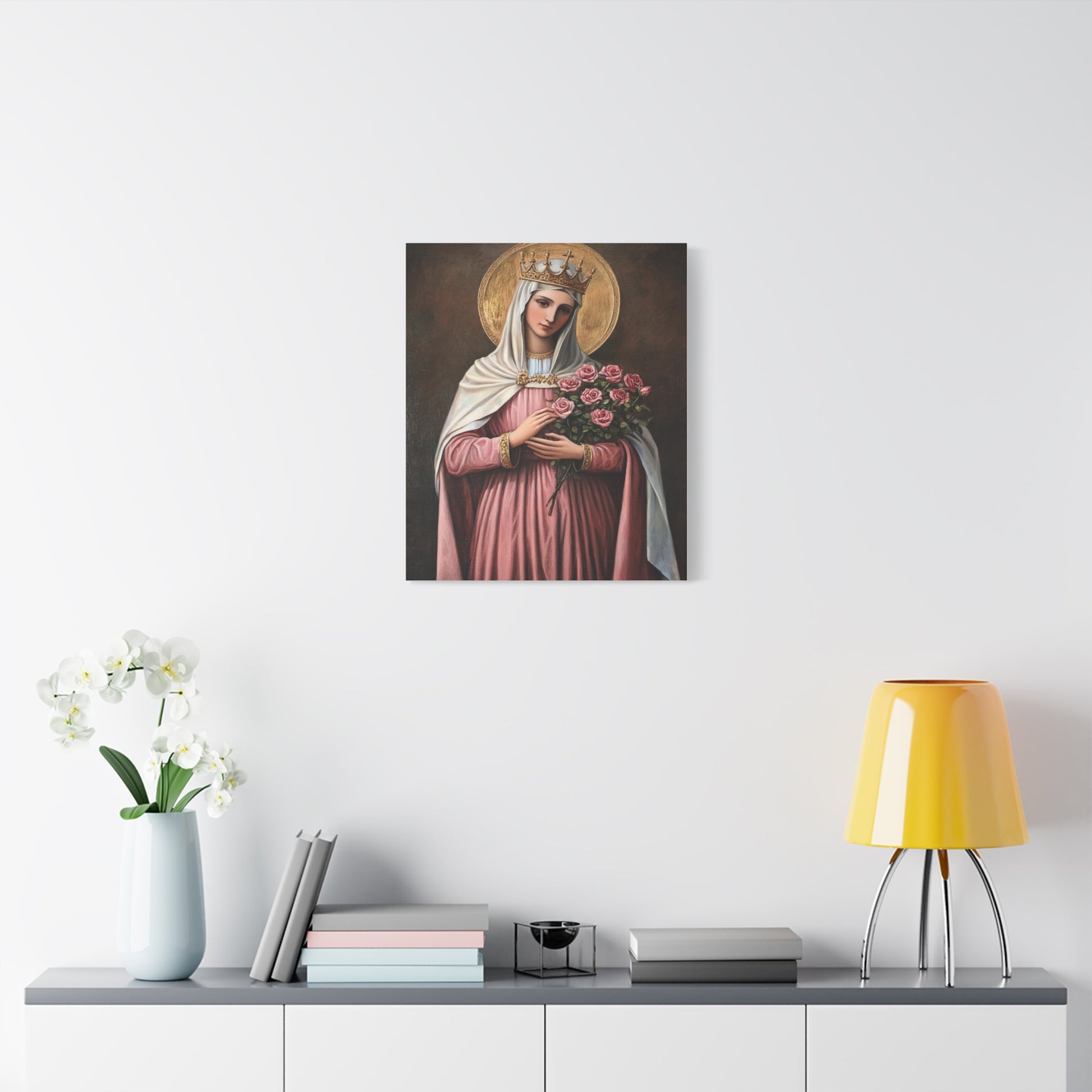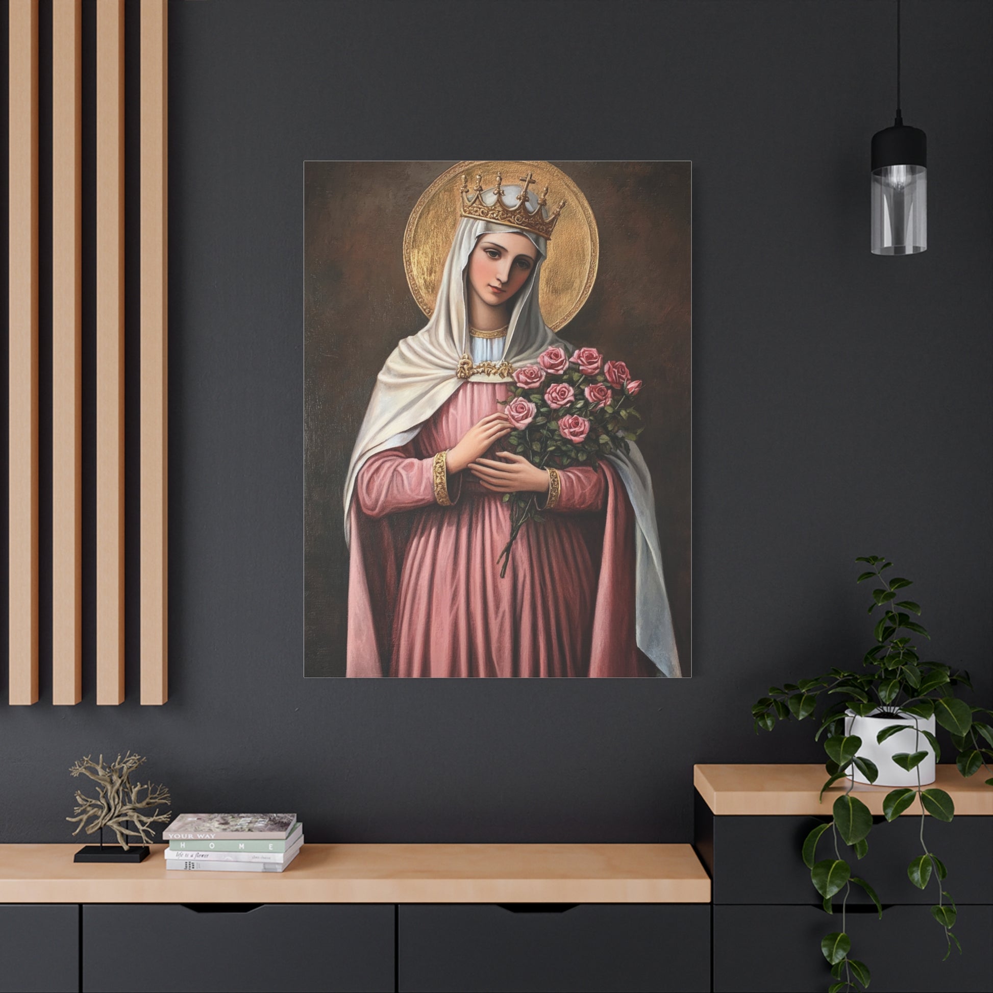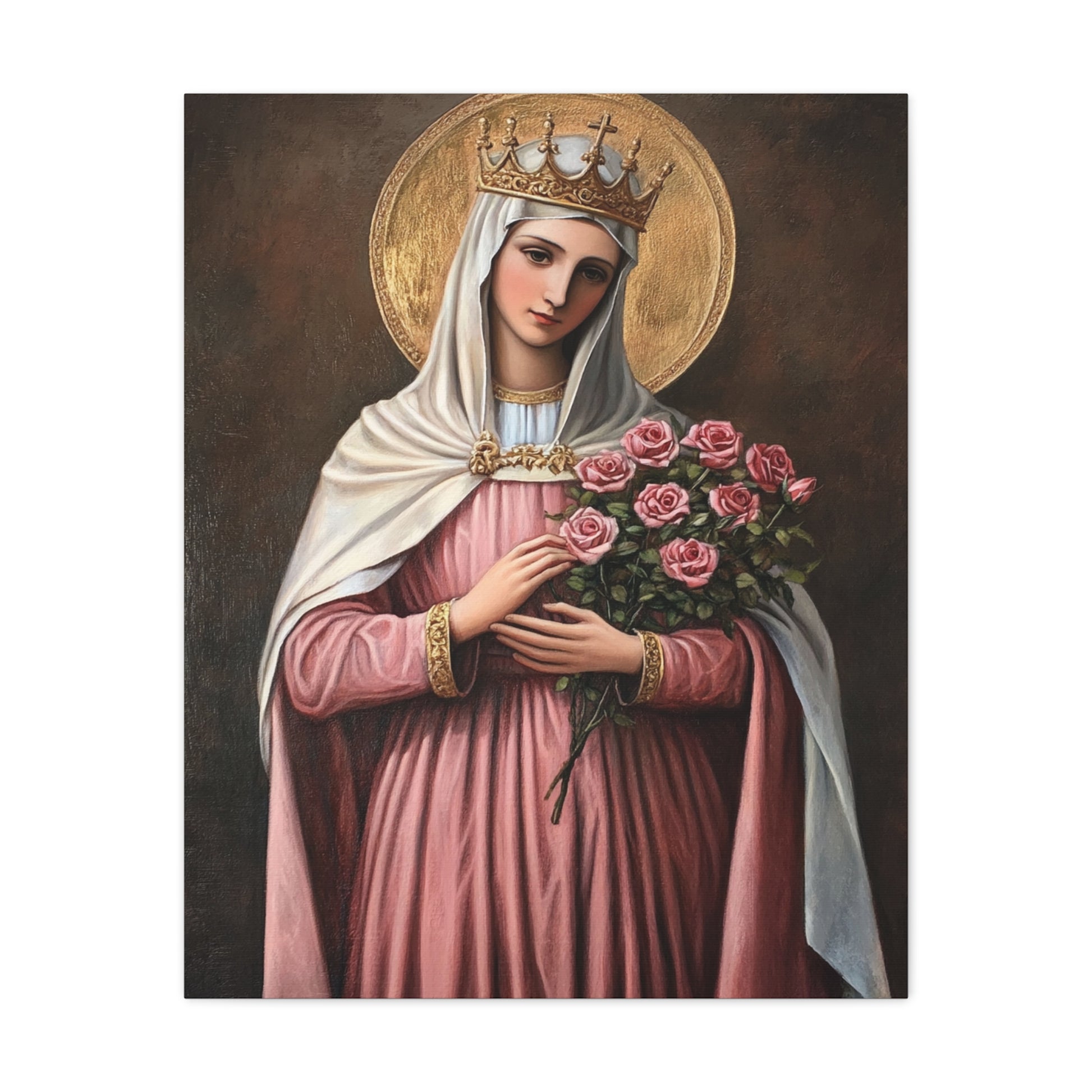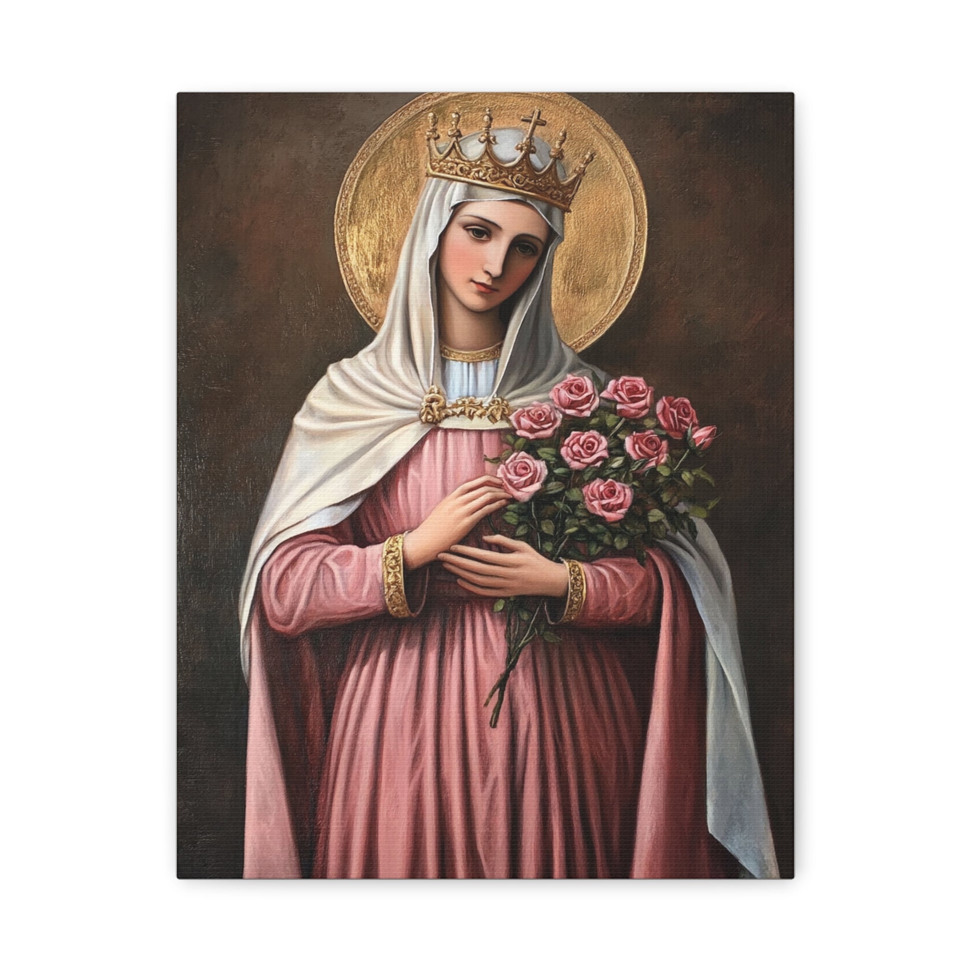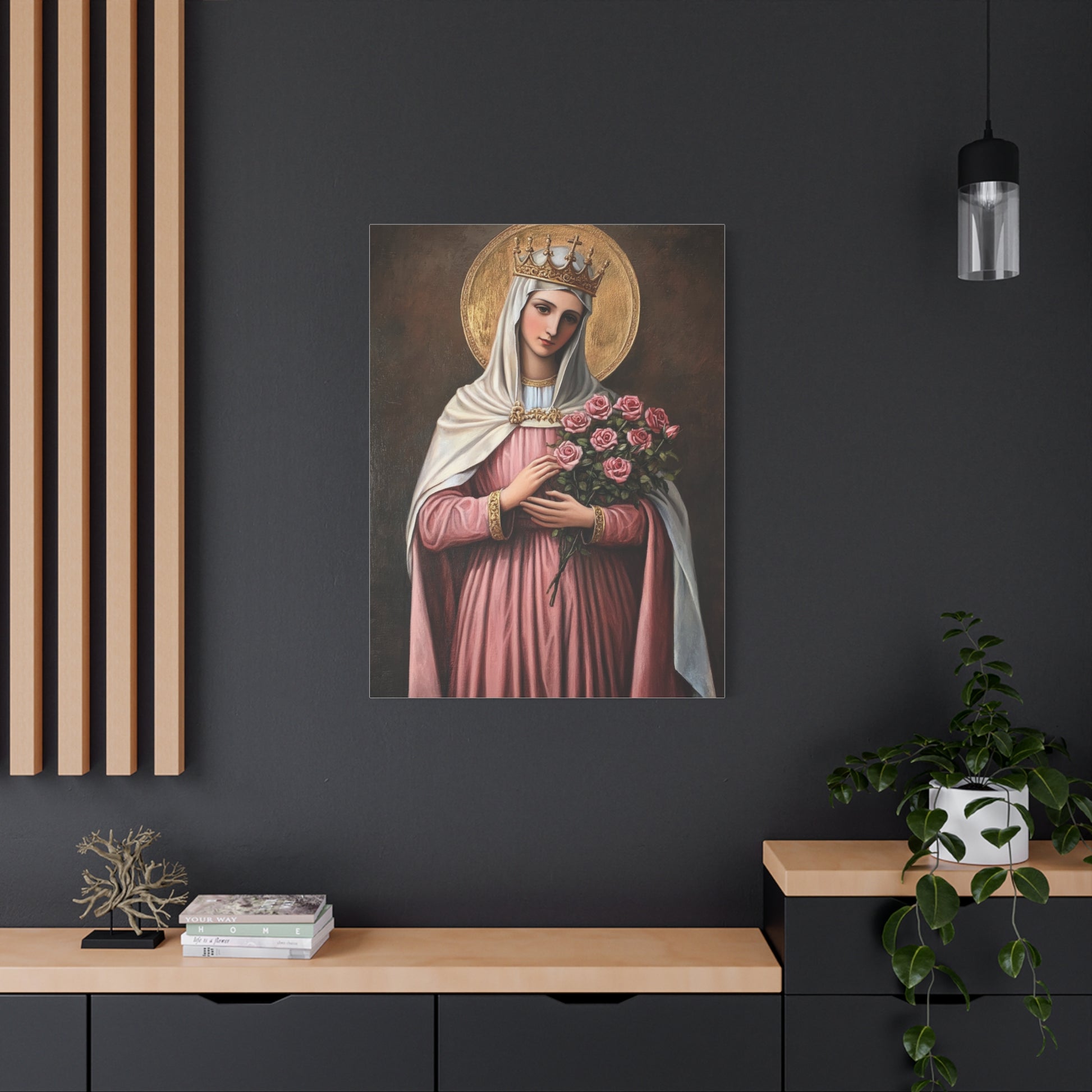 St. Elizabeth of Hungary with Roses Catholic Canvas Wall Art, Christian Decor