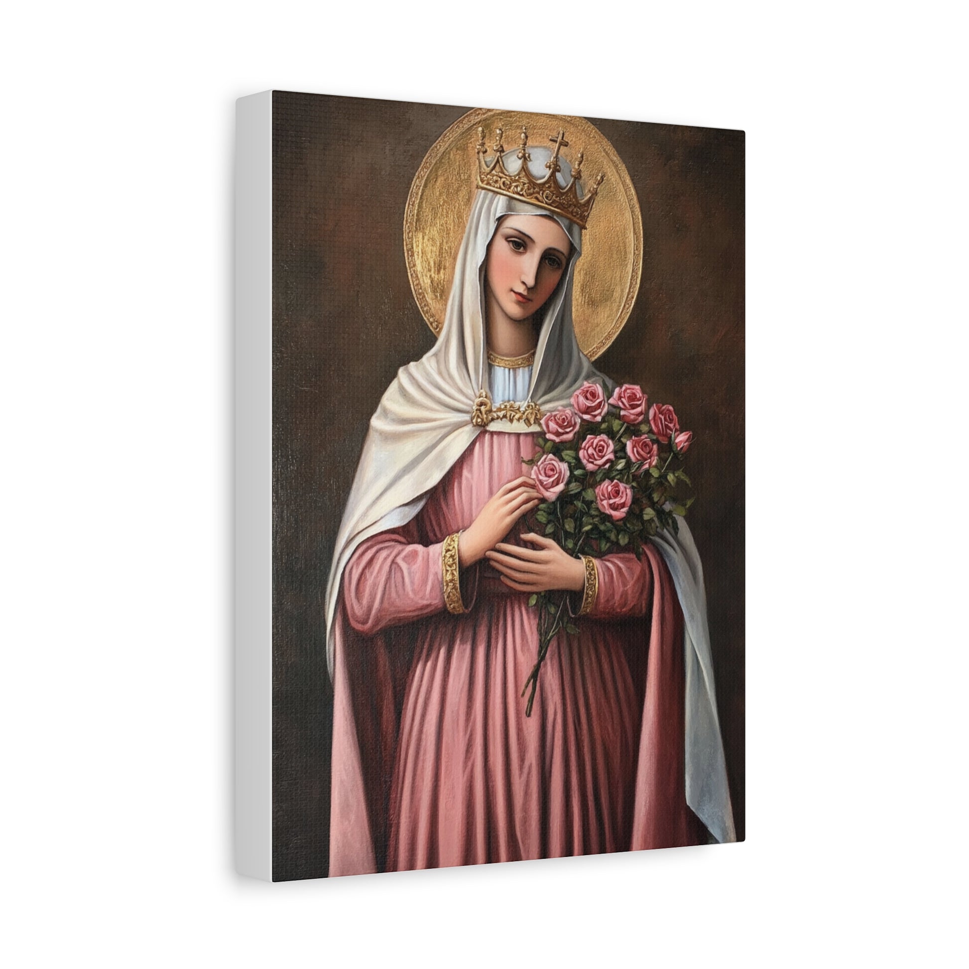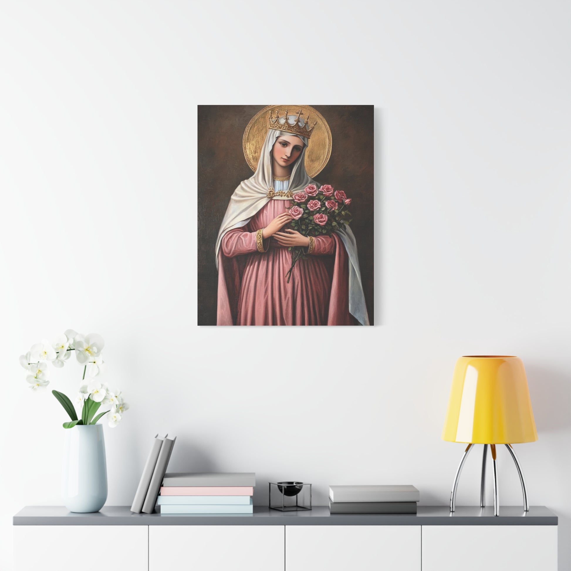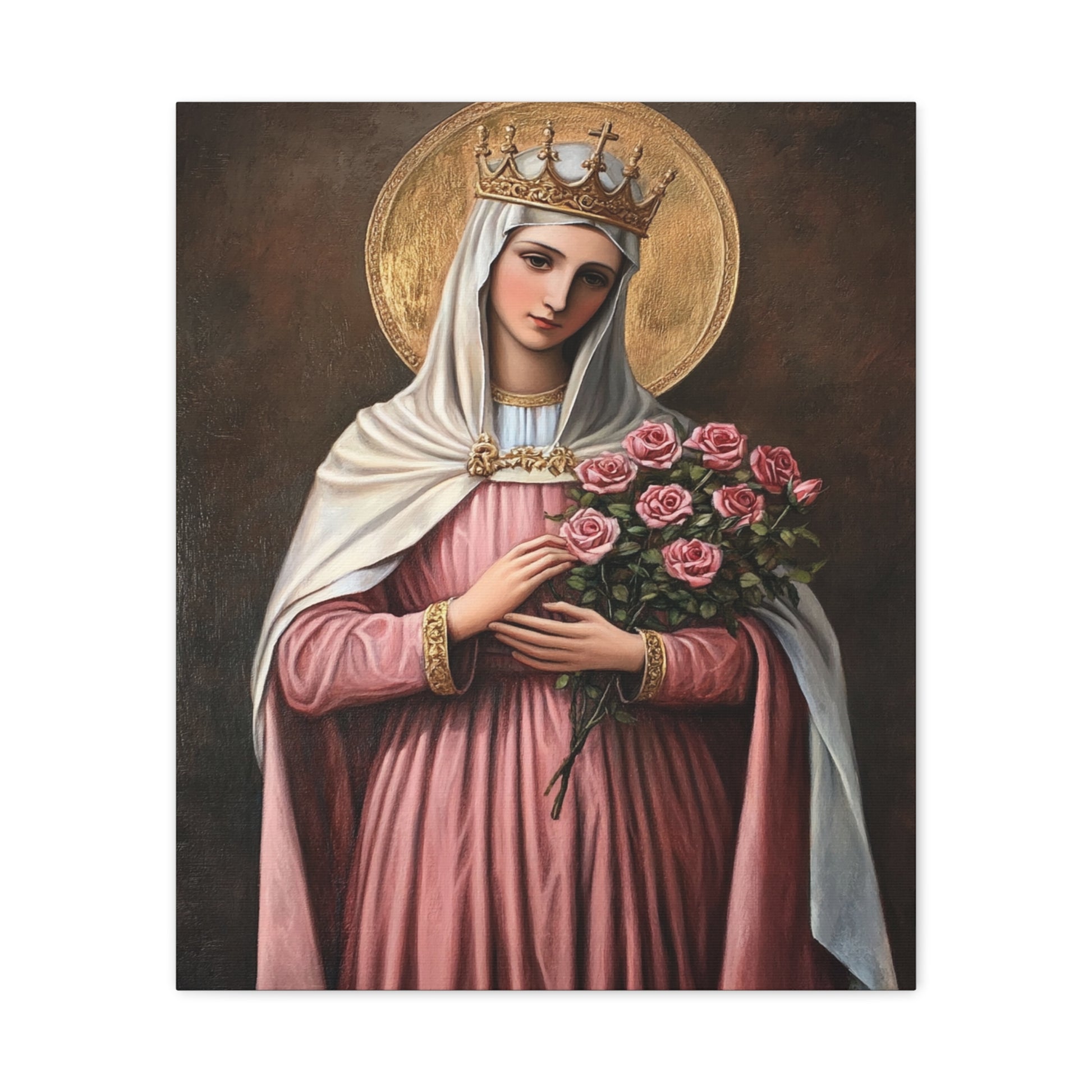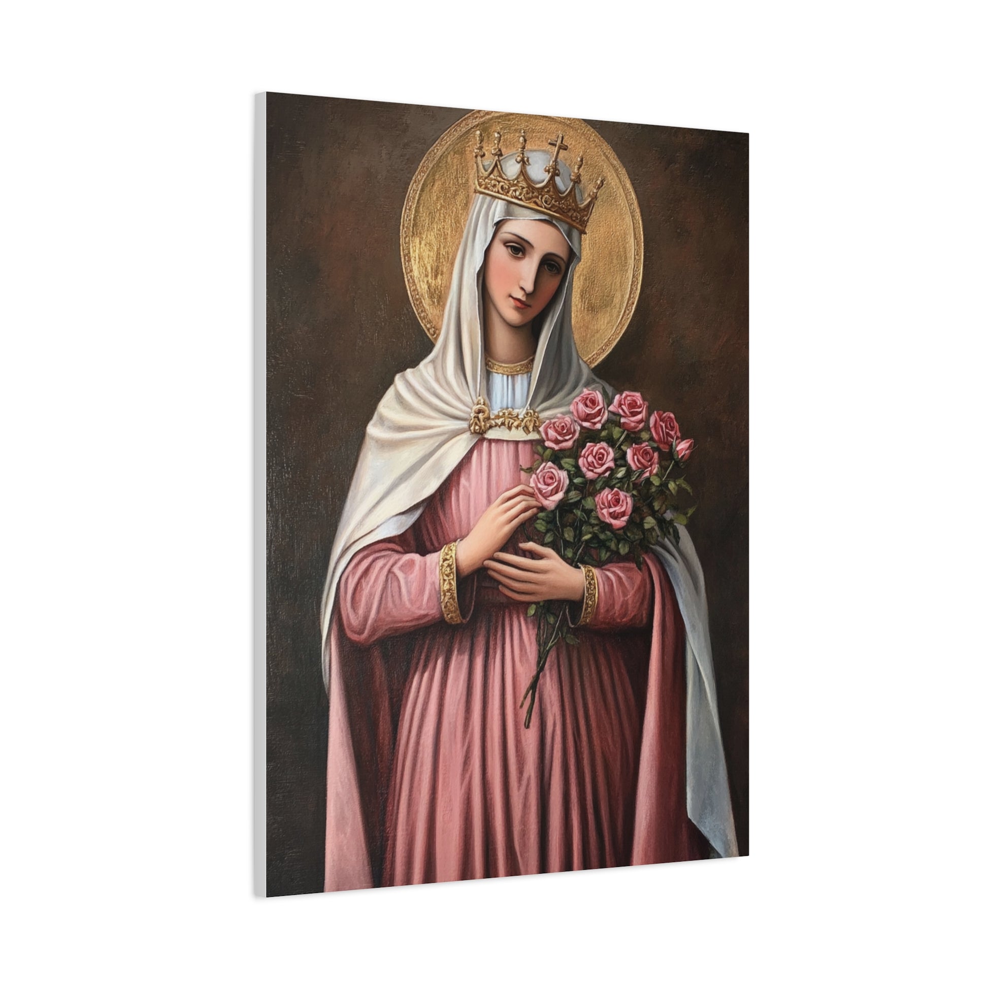 St. Elizabeth of Hungary with Roses Catholic Canvas Wall Art, Christian Decor