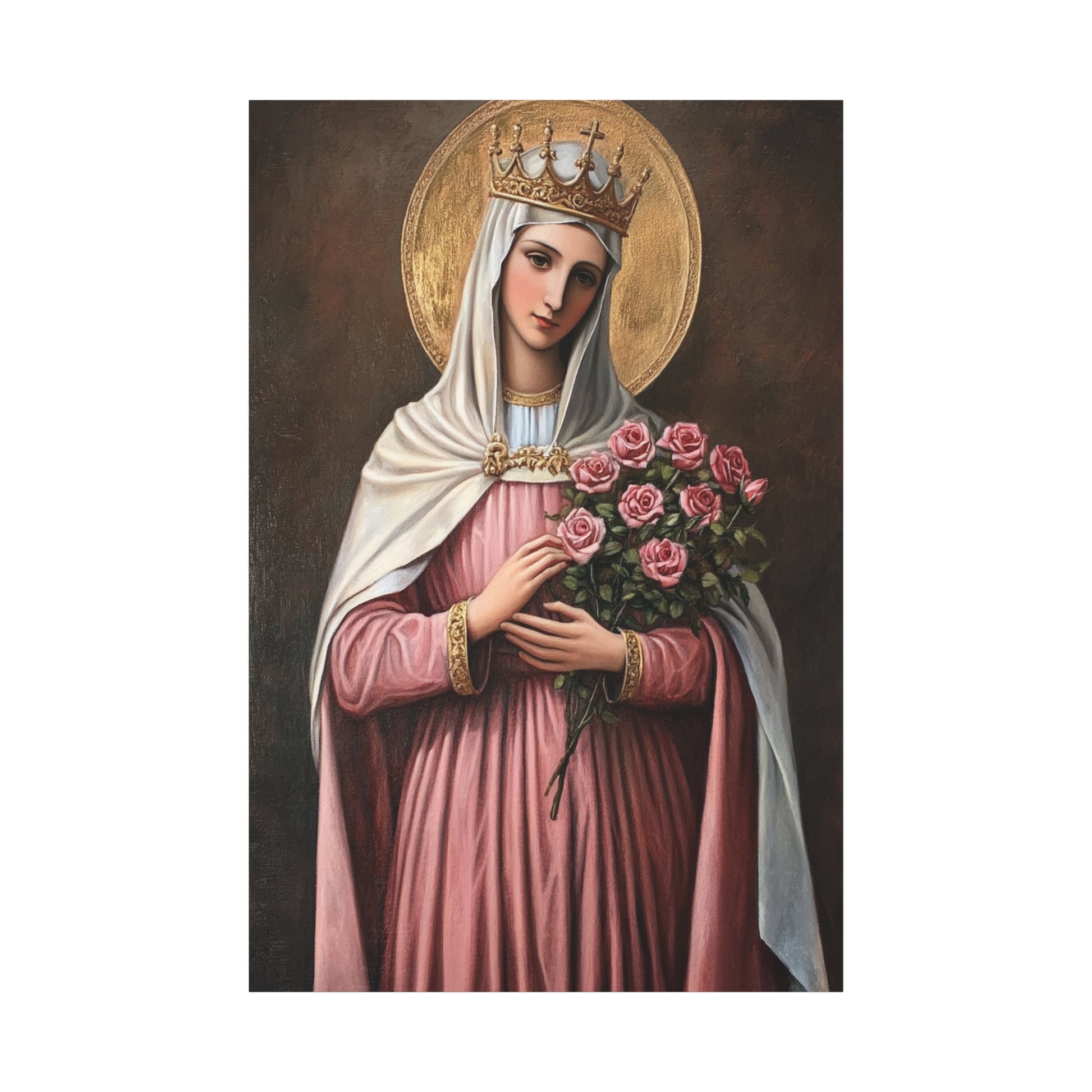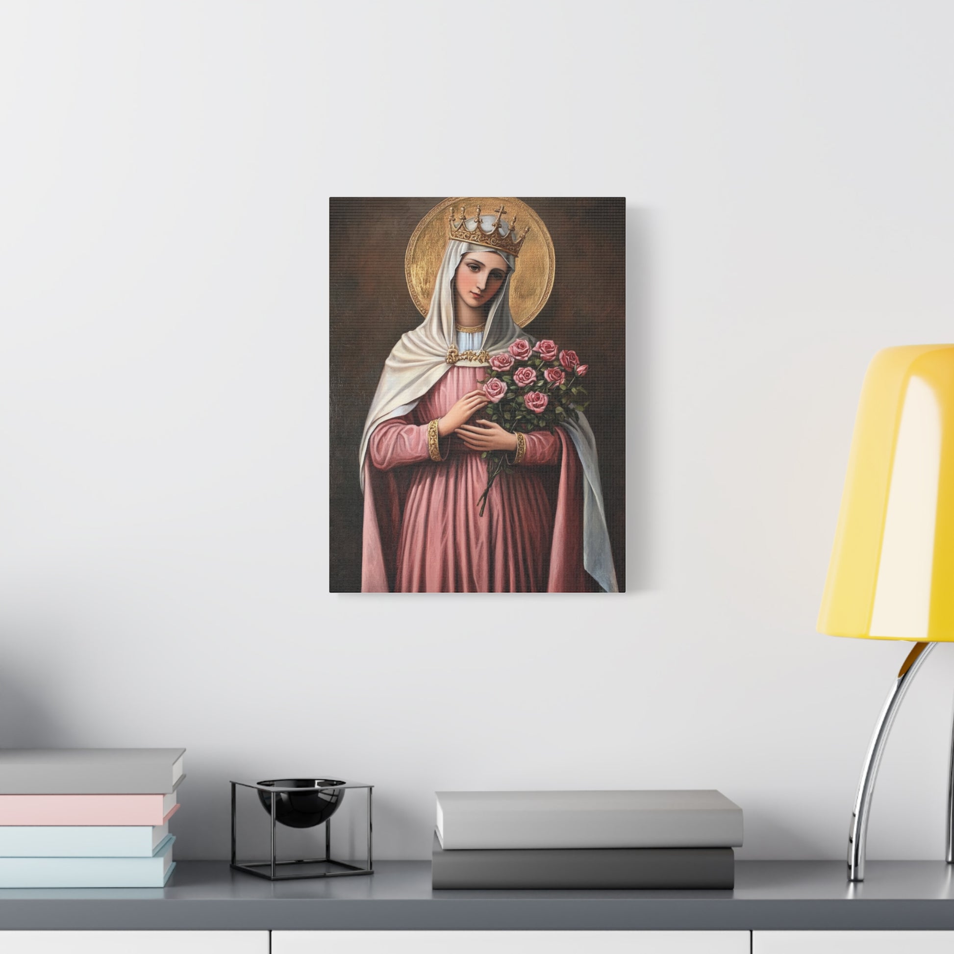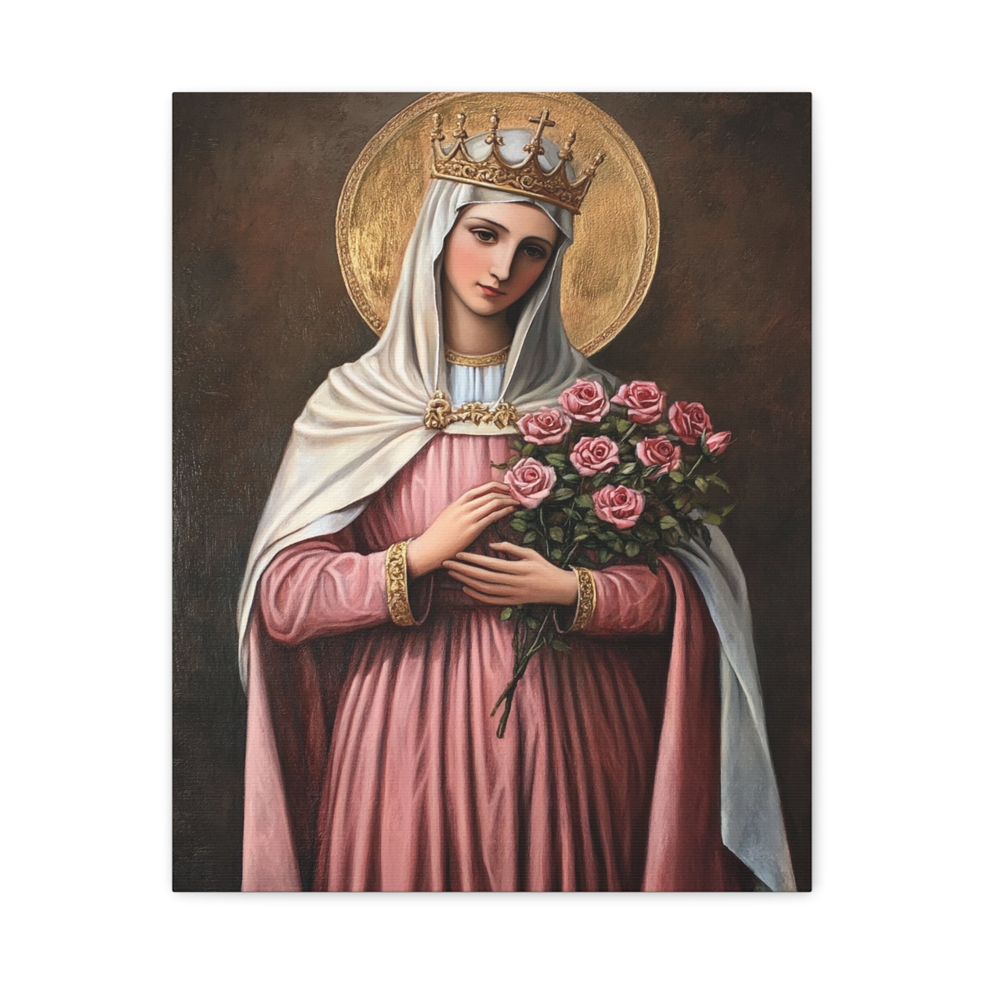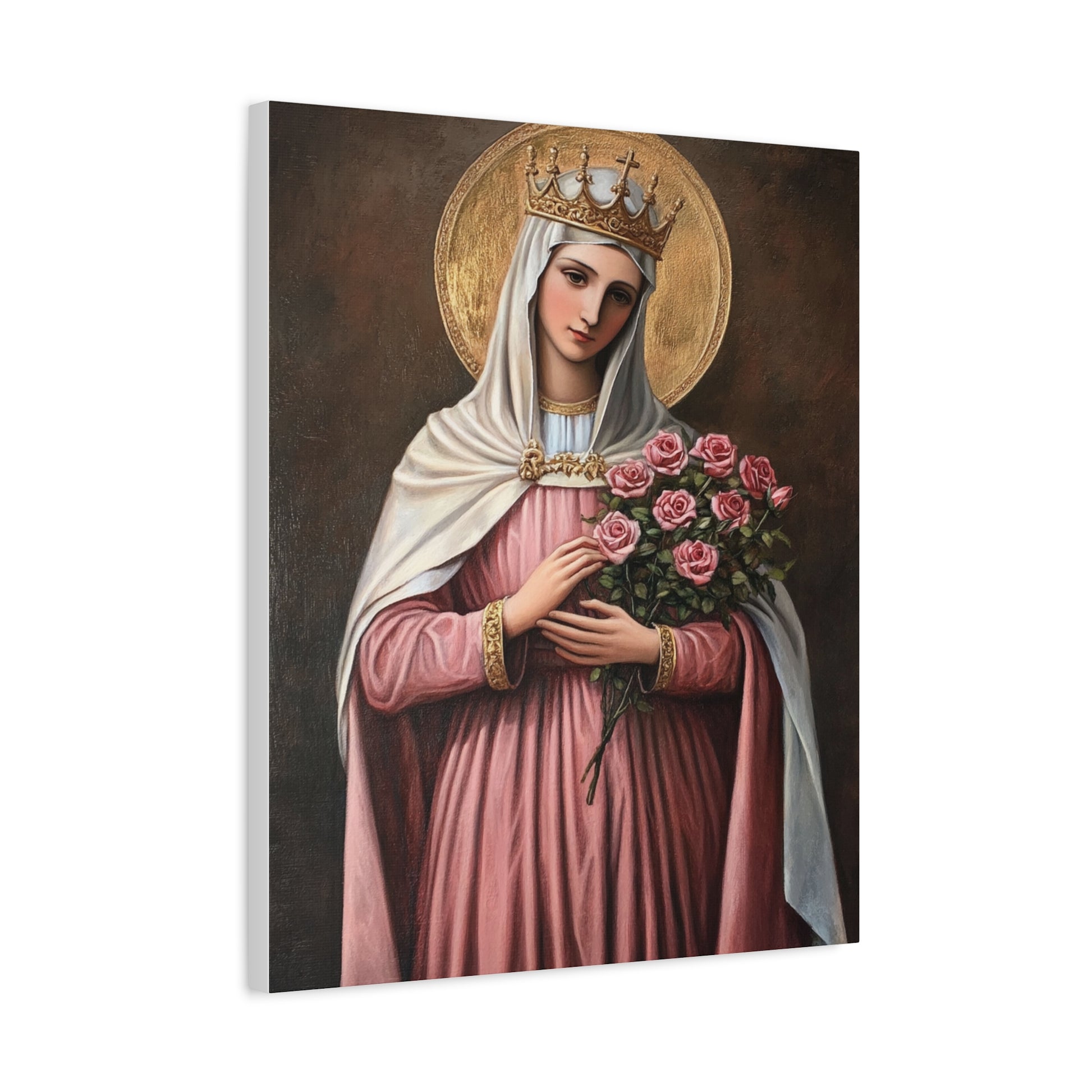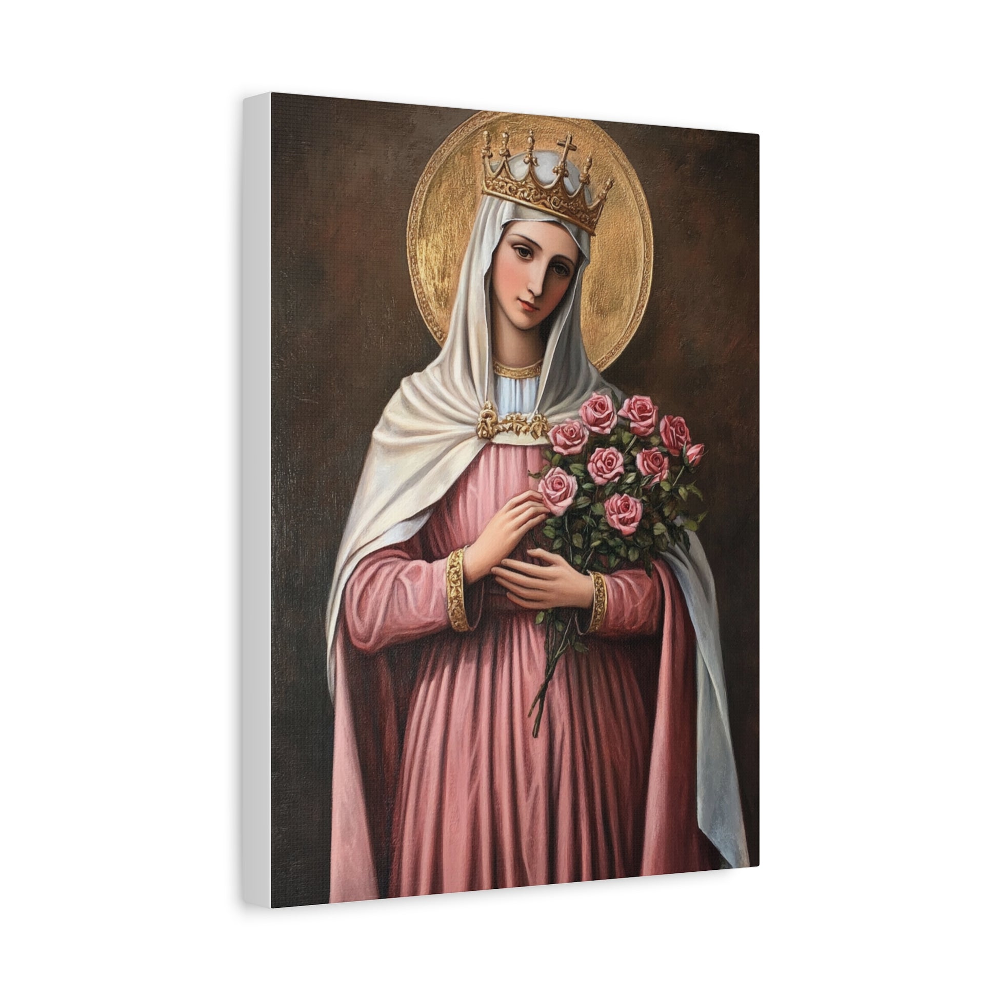 St. Elizabeth of Hungary with Roses Catholic Canvas Wall Art, Christian Decor