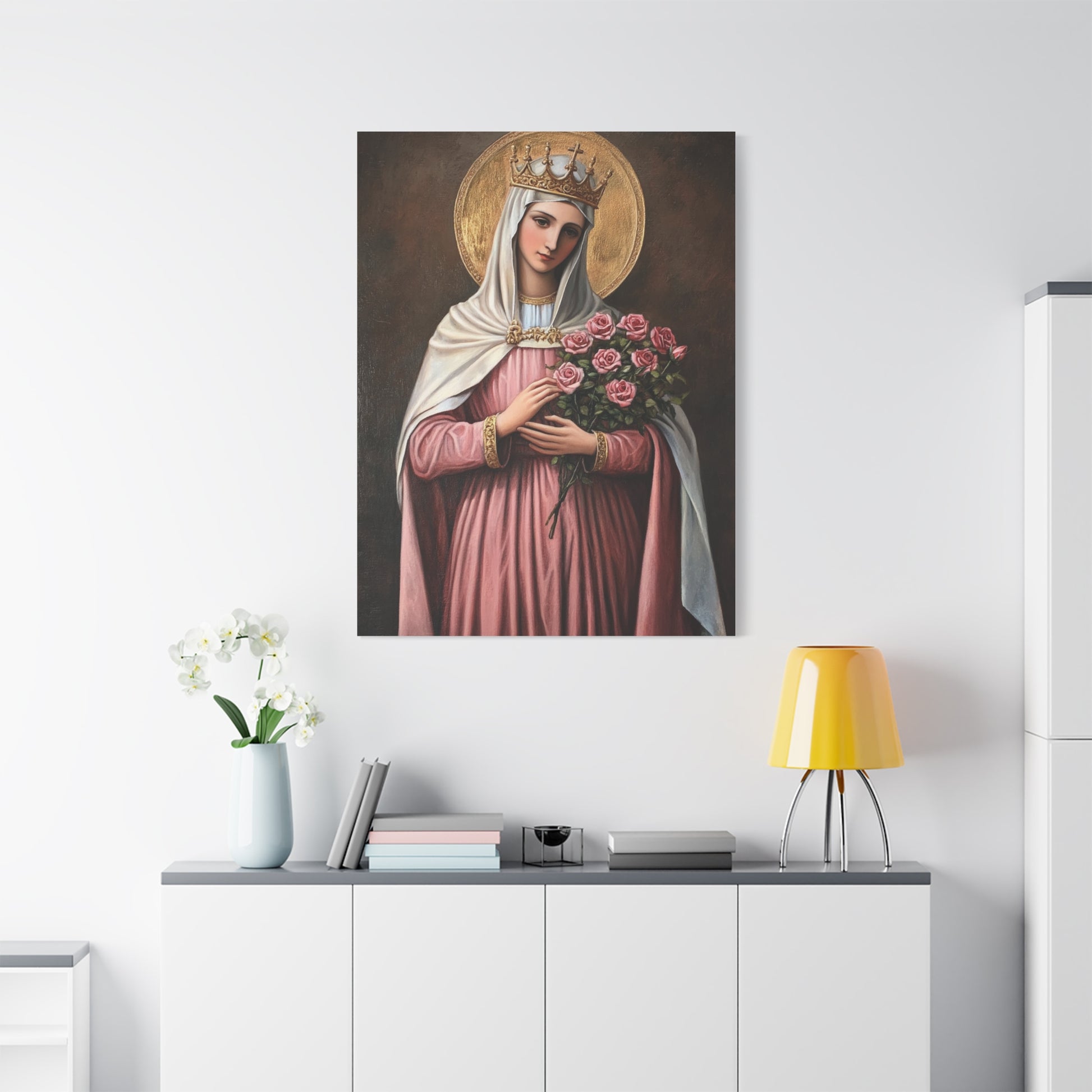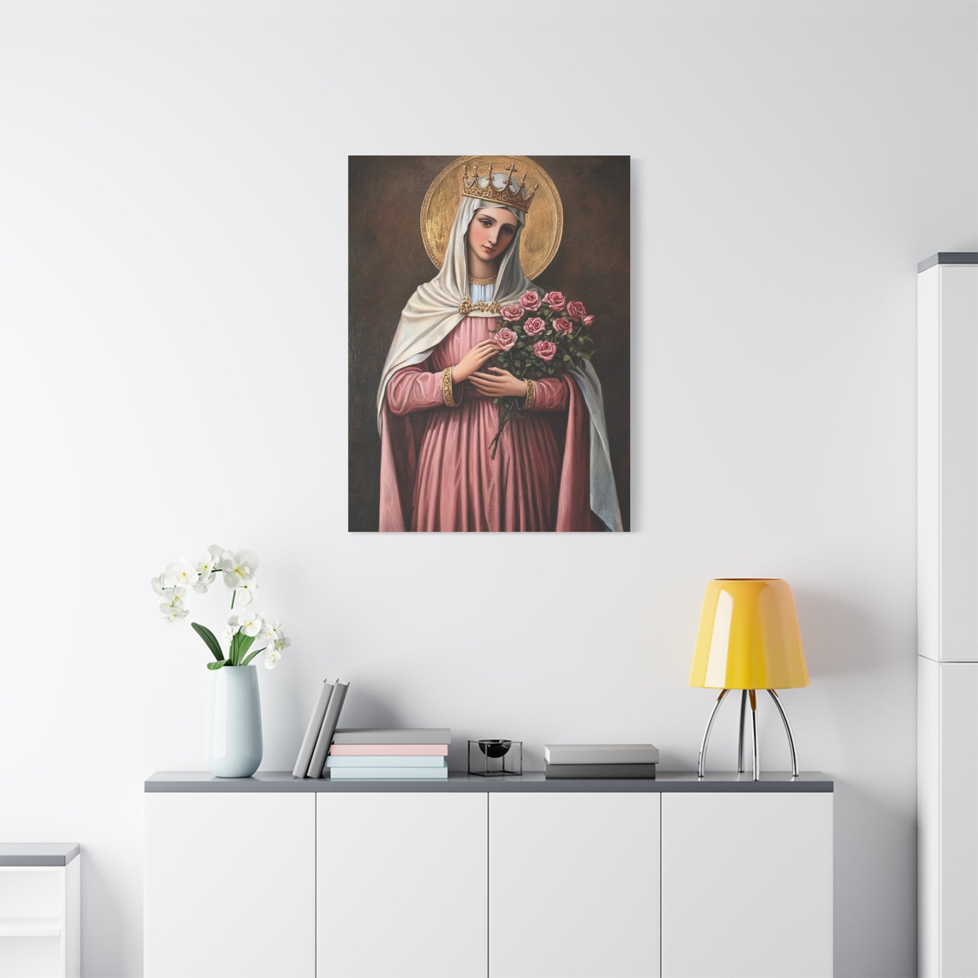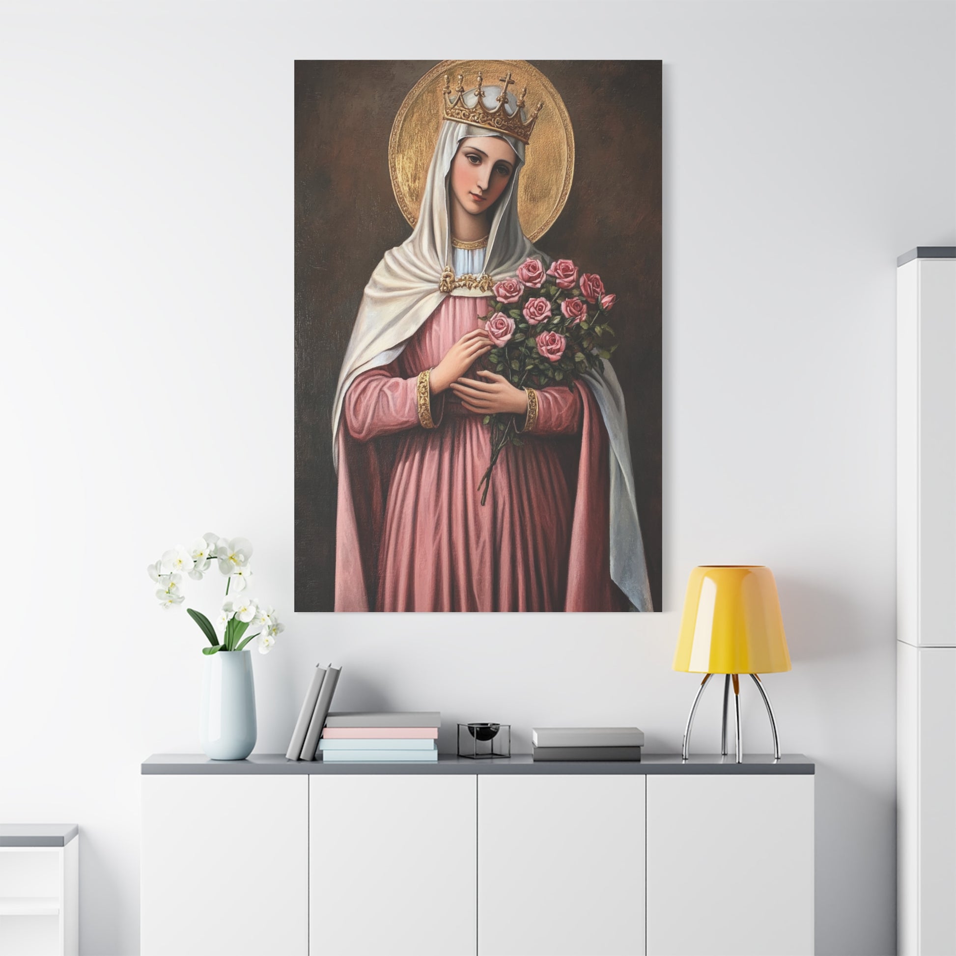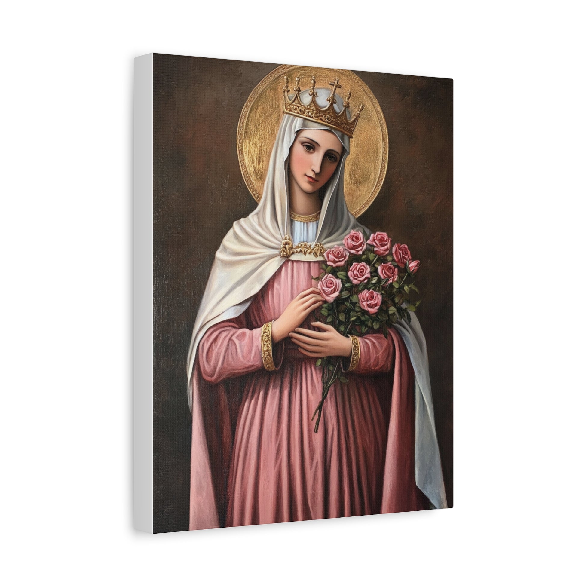 St. Elizabeth of Hungary with Roses Catholic Canvas Wall Art, Christian Decor