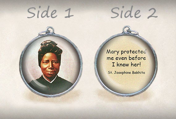 St. Josephine Bakhita Quote Mary protected me Catholic Medal. Religious Christian Pendant / Charm Double Sided.