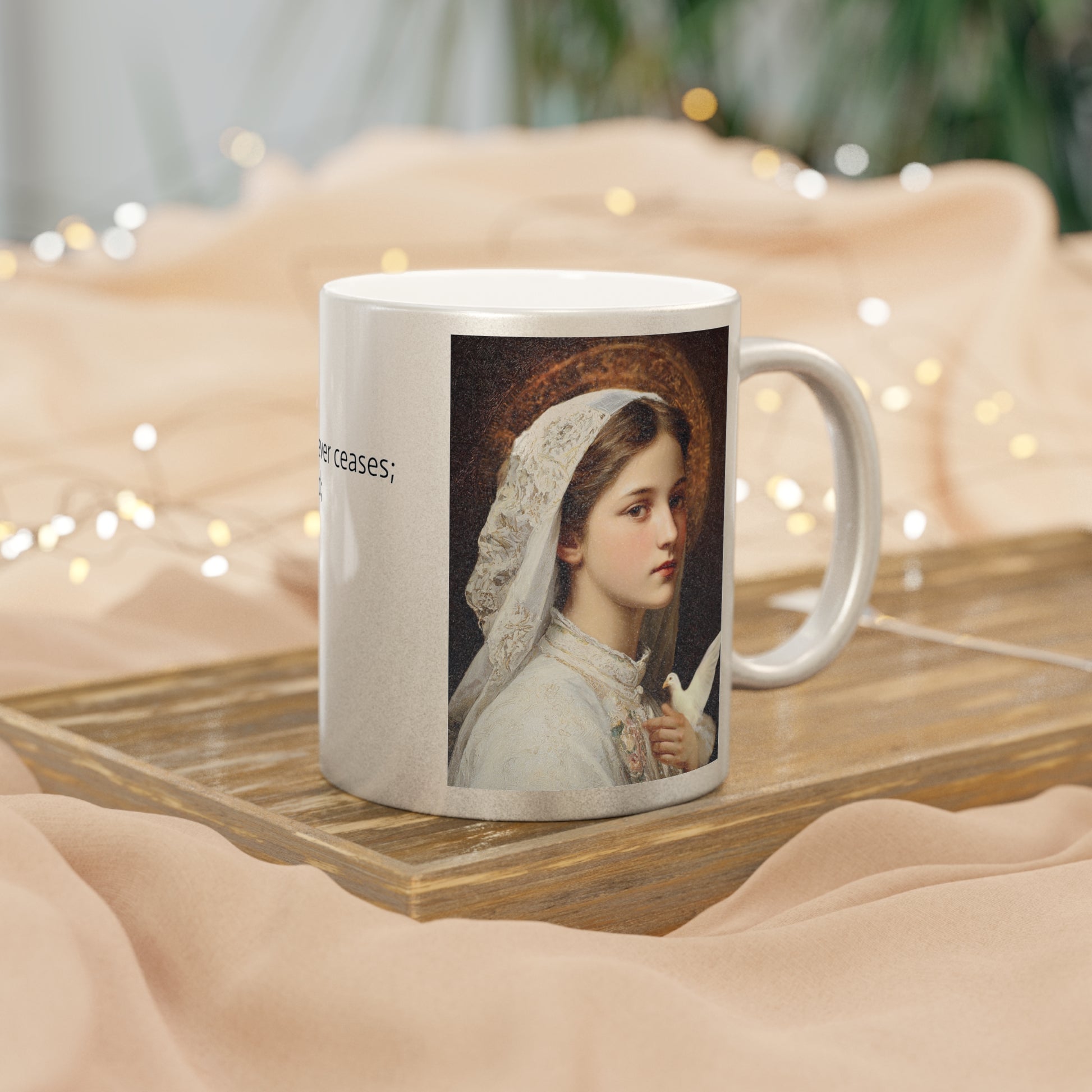 St Maria Goretti with White Veil Mug for Faithful Mornings, Scripture 11oz Mug, Gift for Friends, Religious Decor, Christian Coffee Mug