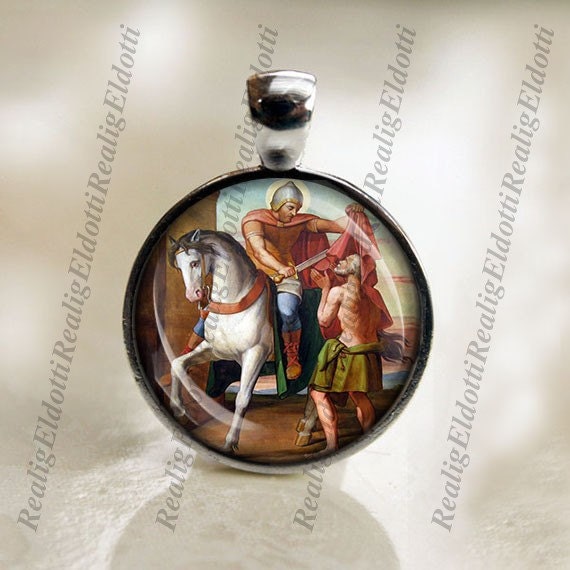 St Martin of Tours Religious Catholic Medal Pendant Charm Cabochon with Glass Dome