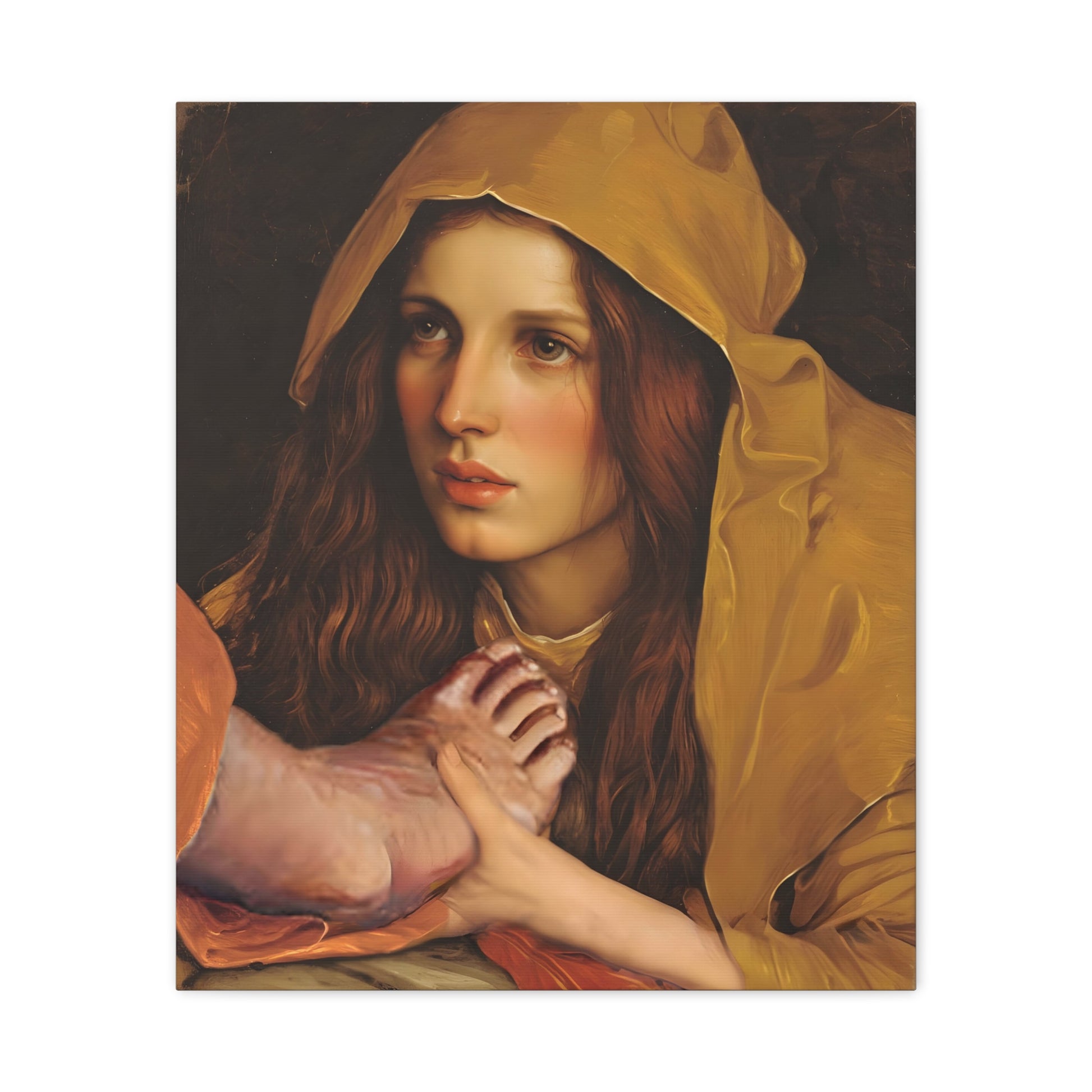 St. Mary Magdalene Anointing Jesus Feet Catholic Canvas Wall Art, Christian Decor