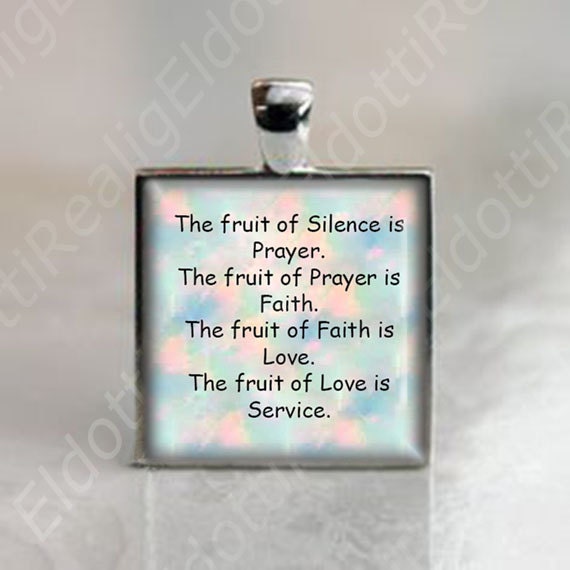 The fruit of Silence is Prayer Quote Mother Teresa Catholic Medal Silvertone Square Pendant
