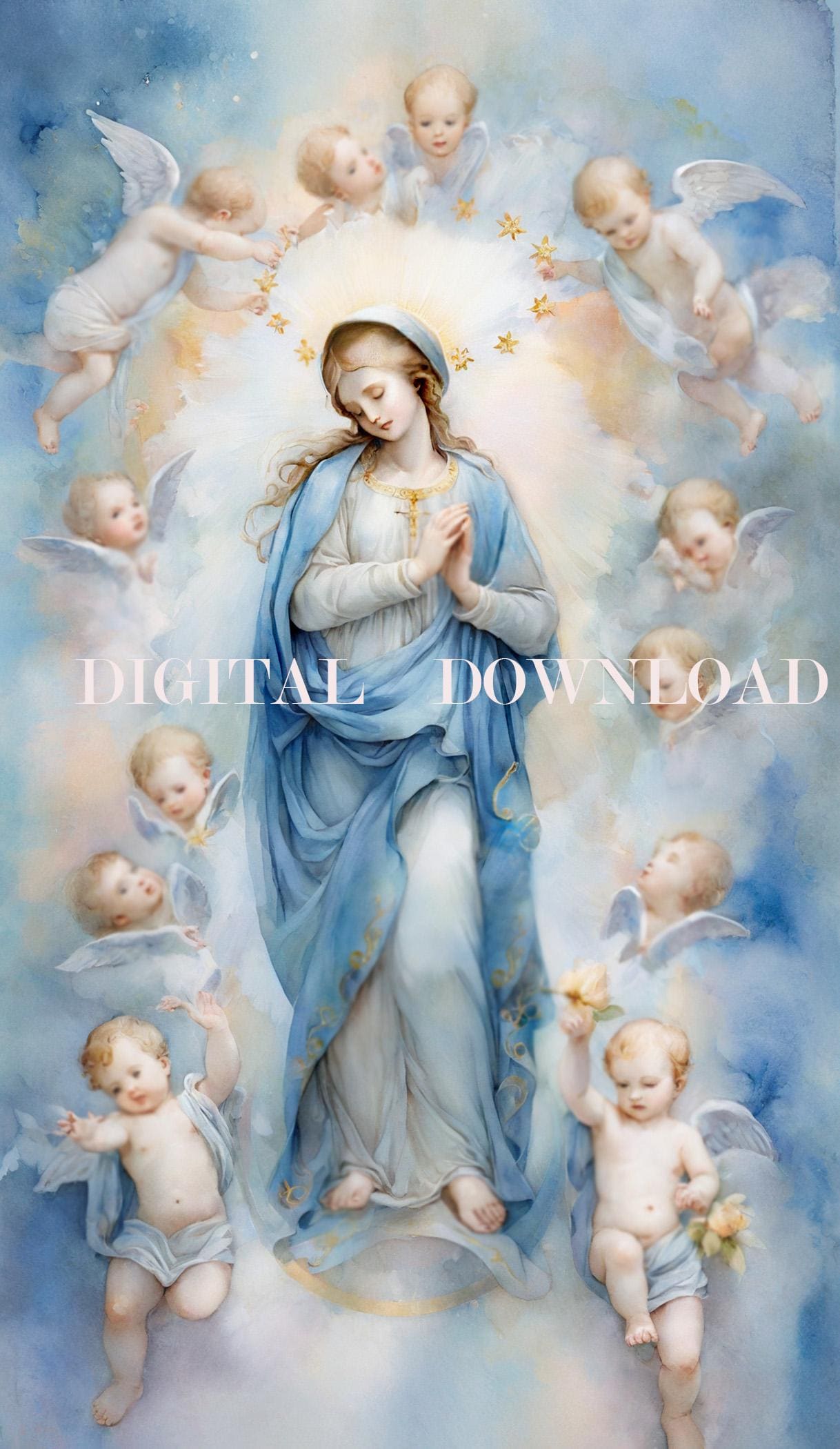 The Immaculate Conception of the Blessed Virgin Catholic Digital Art DOWNLOAD Watercolor Style