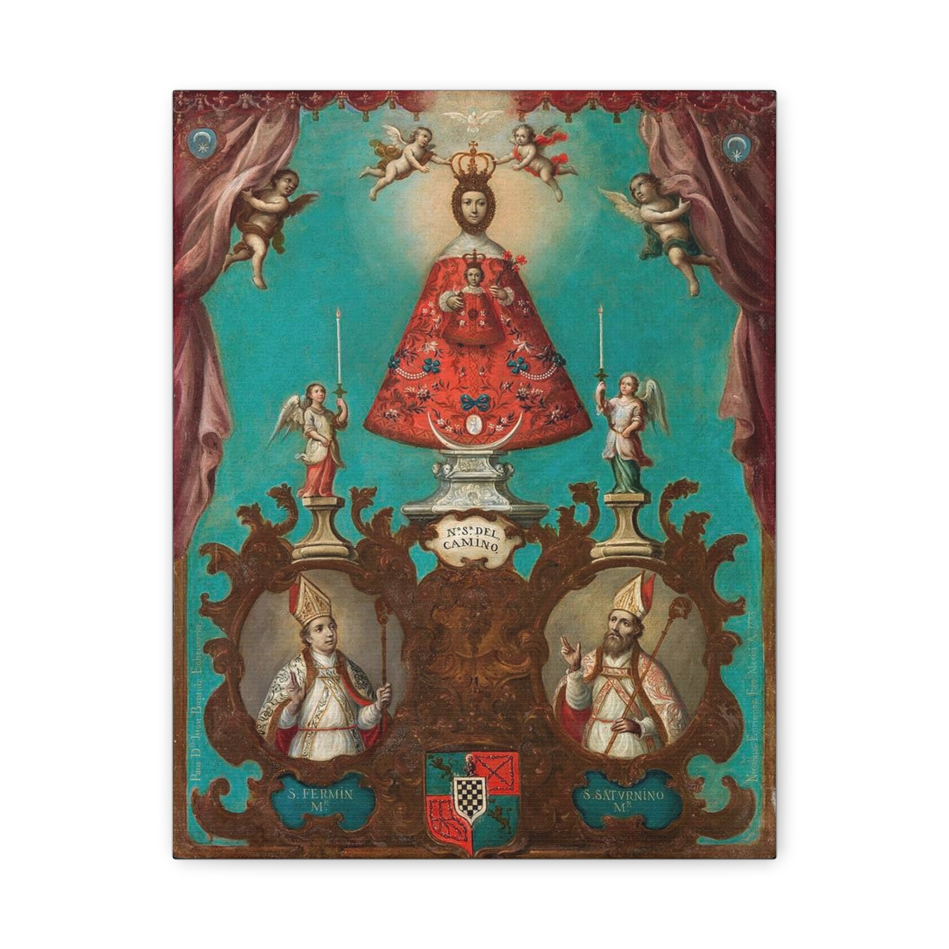 The Virgin of El Camino with St Fermin and St Saturnino Catholic HQ Print on Canvas Ready To Hang - Virgin Mary Canvas