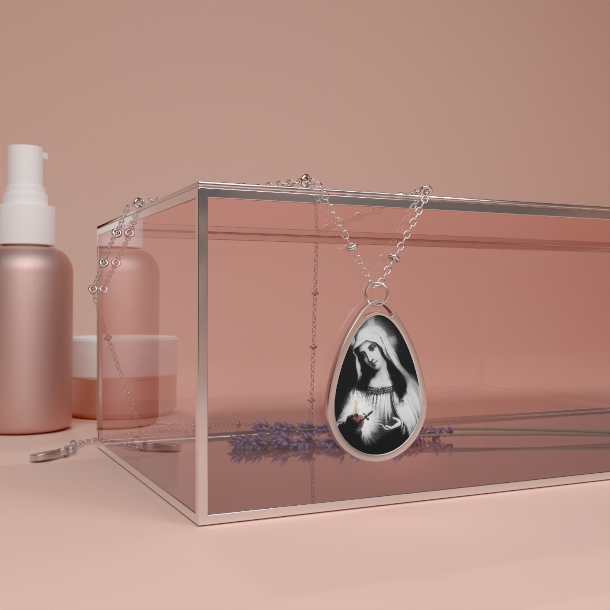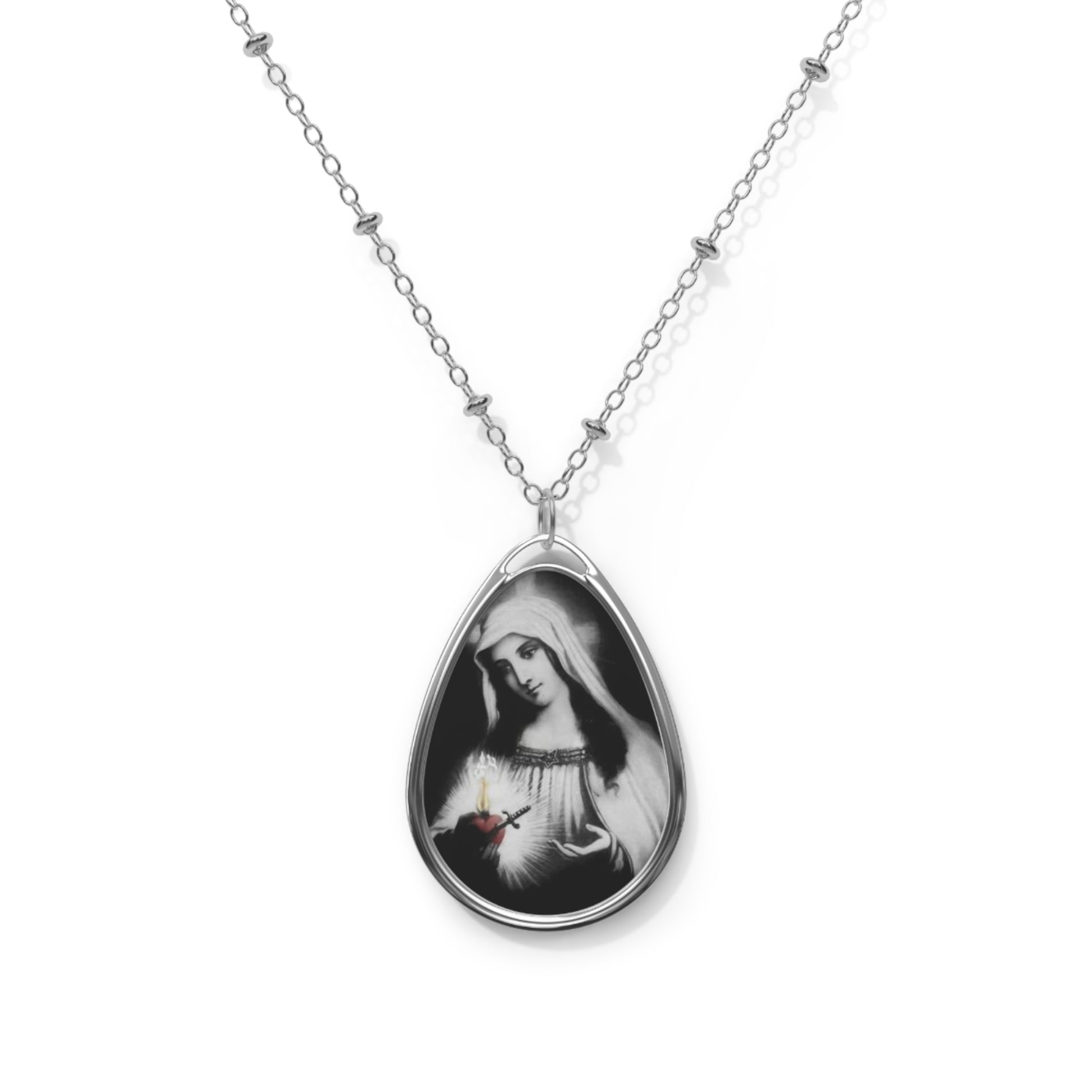 Virgin Mary Holds Her Immaculate Heart Catholic Necklace Drop Pendant